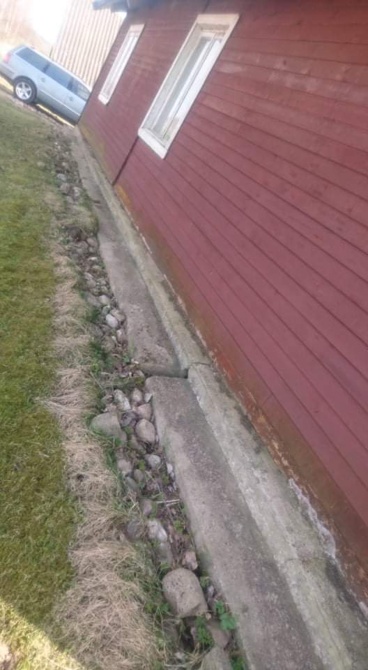 Maja ülesse tõsta, vana vundament lammutada ja uus vundament valada. Äkki ka alumine palgiring vahetada.