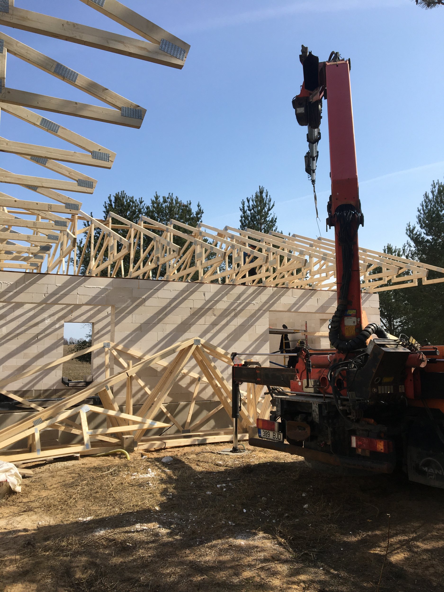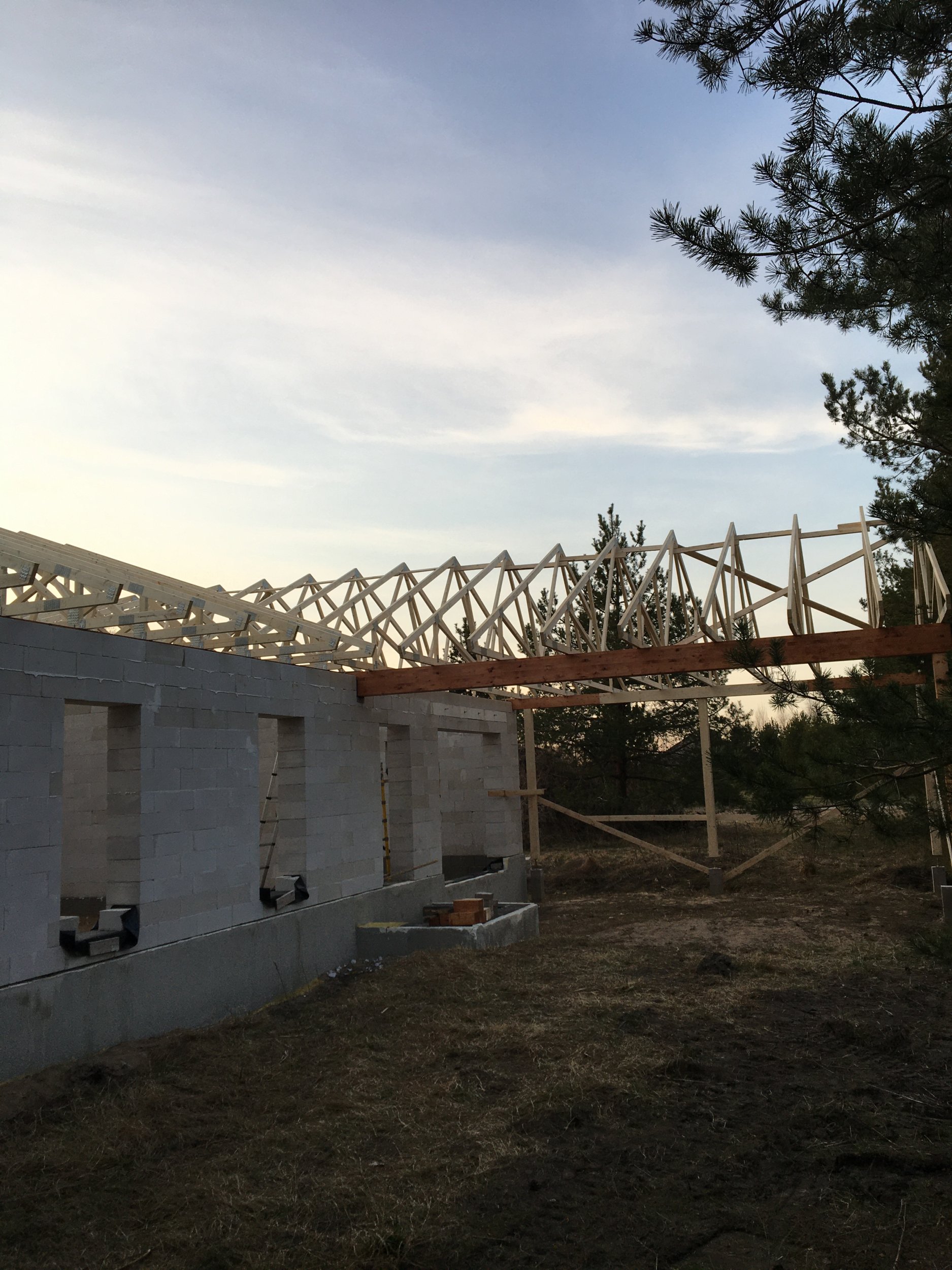 Katusele tuleb paigaldada aluskate ja roov, uusehitis ja fermid on just paigaldatud.