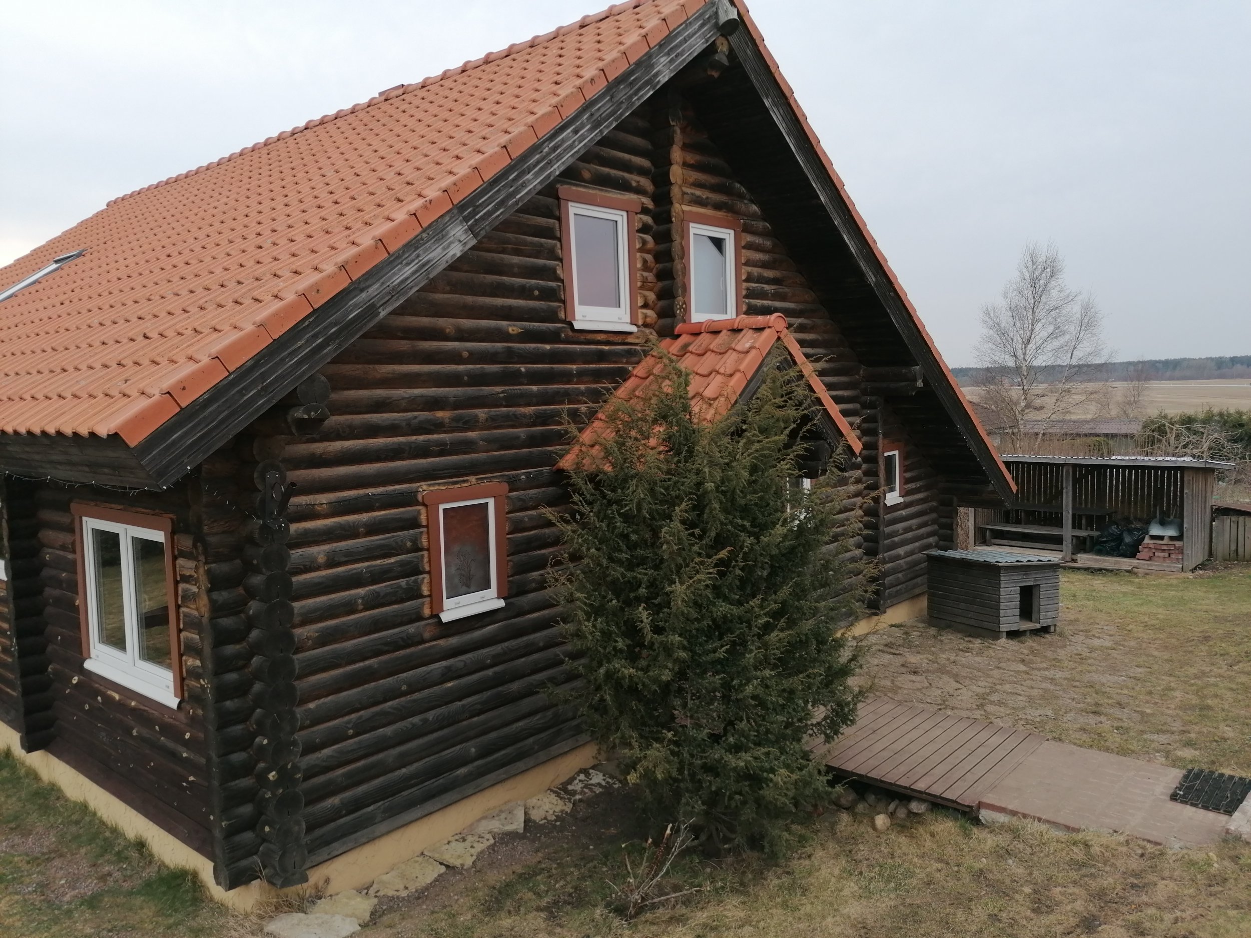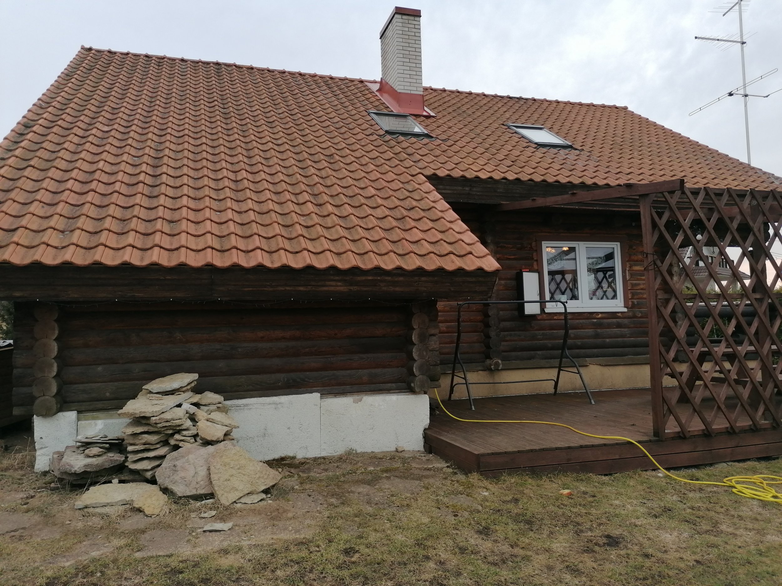 Palkmaja värvimine- Eelnev puhastamine ja 2 kihti heledat tõrvaõli.
