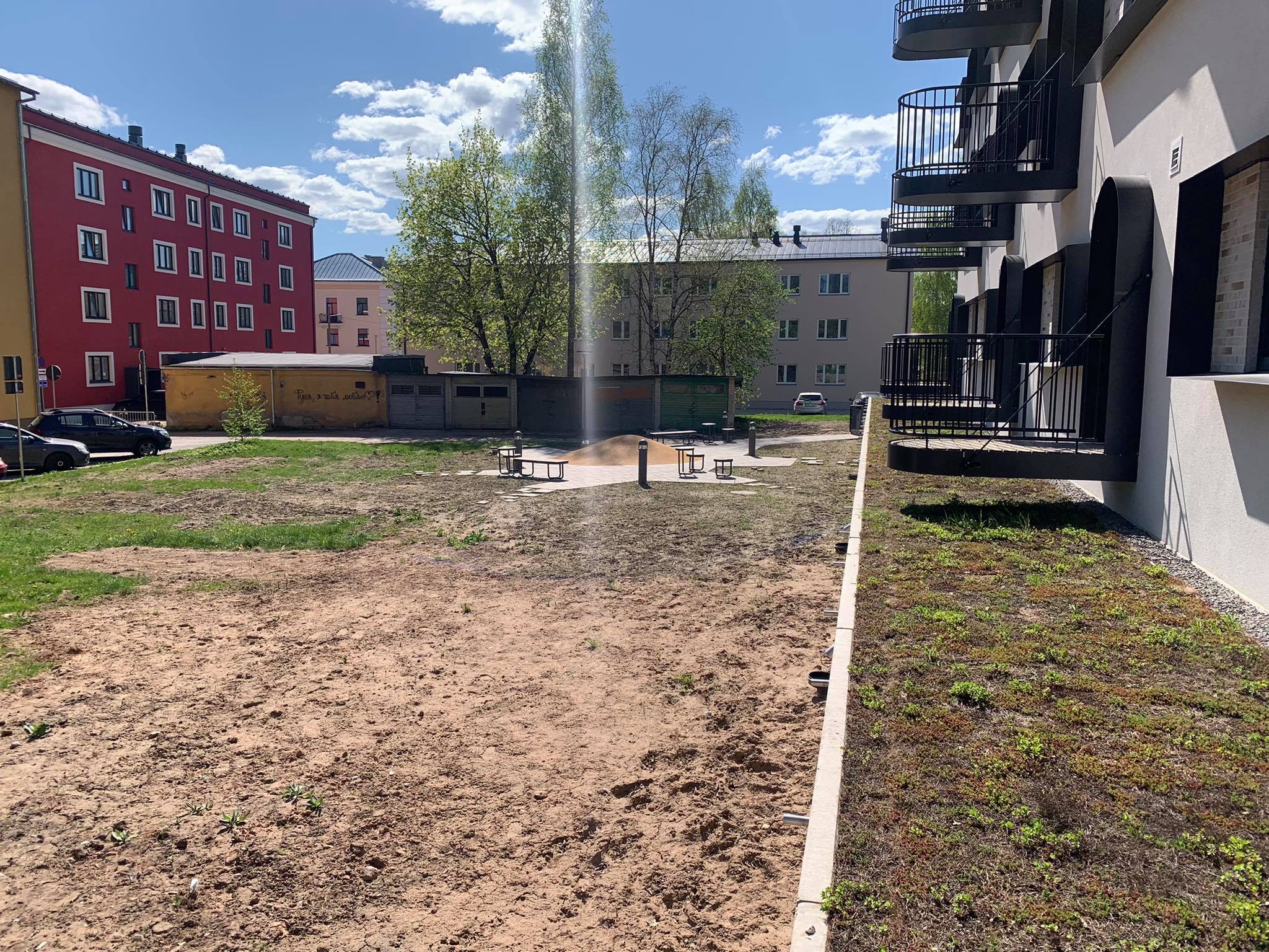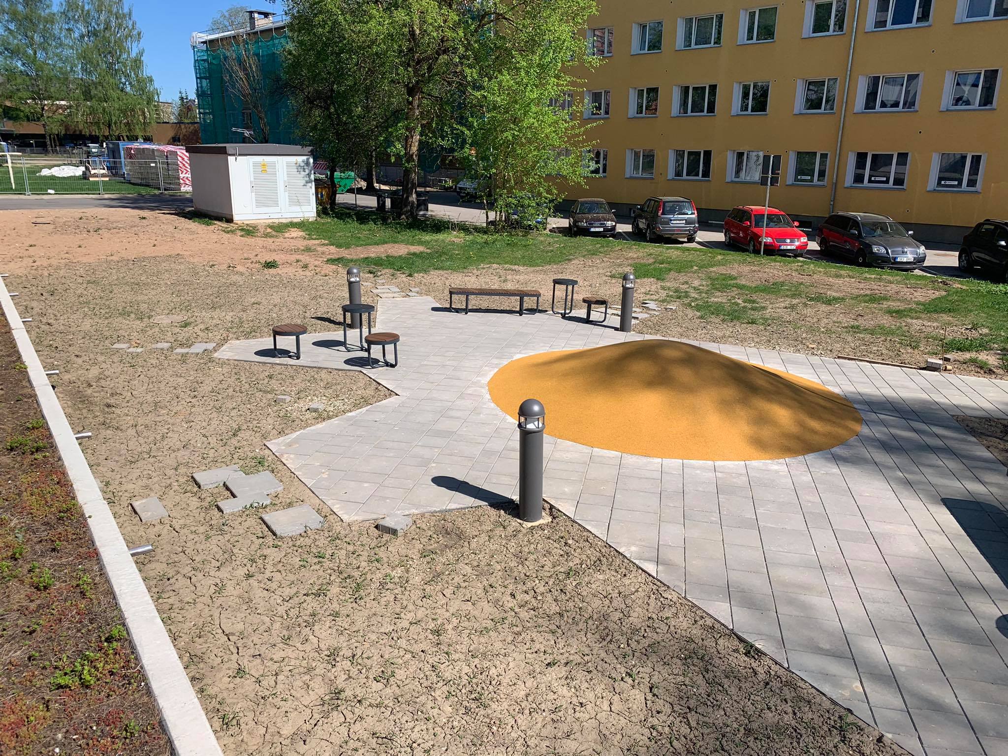 Sügisel on rajatud kivisillutise alad ja kogu pind musta mullaga tasaseks planeeritud. Istikud tarnime meie,