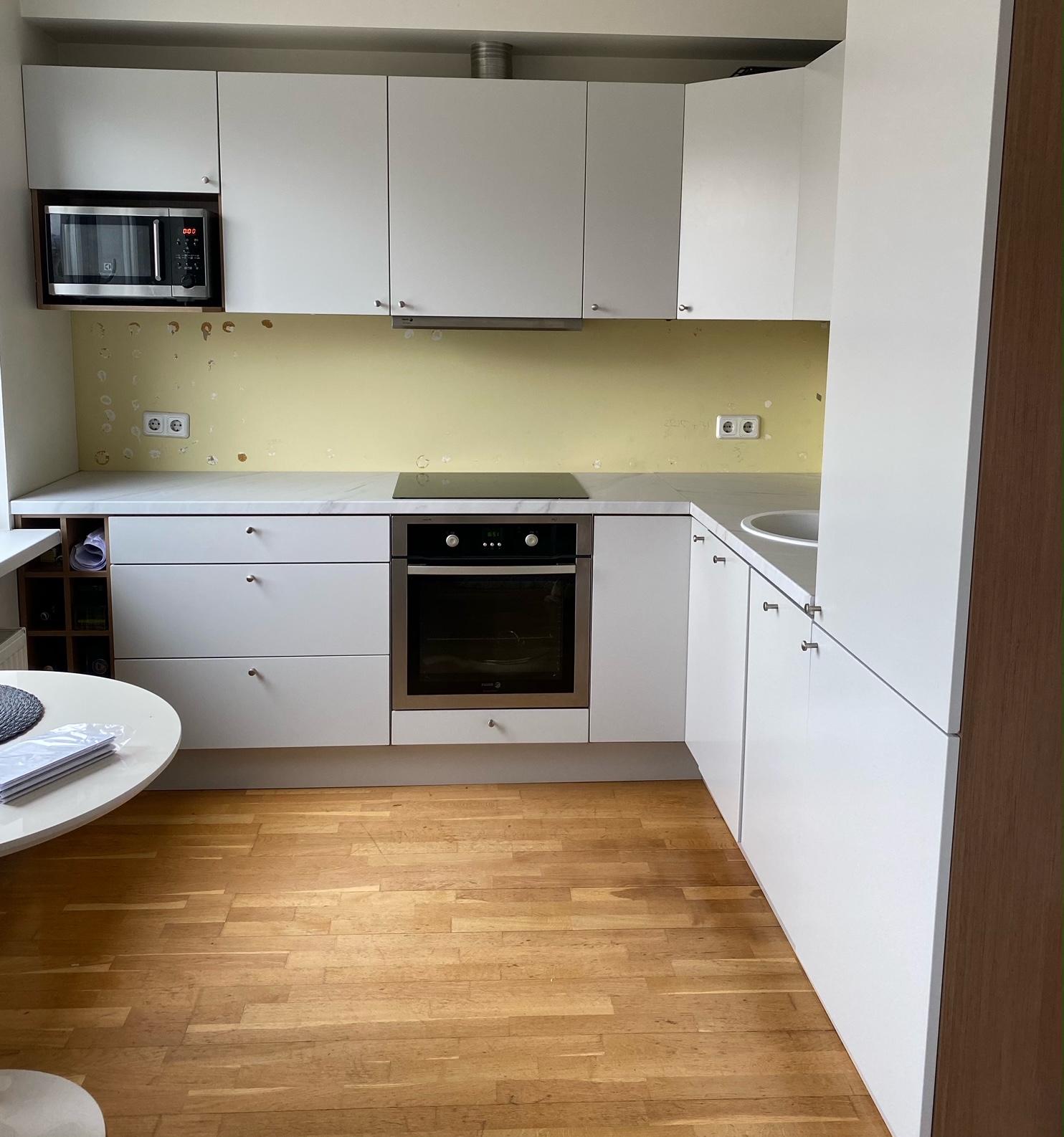 Plaatimisele läheb köögi tagasein ~2,4m2 , kokku 2 seina 1)0,55*1,69 2)0,55*2,55 / Ühes seinas on pistikud, teises mitte.