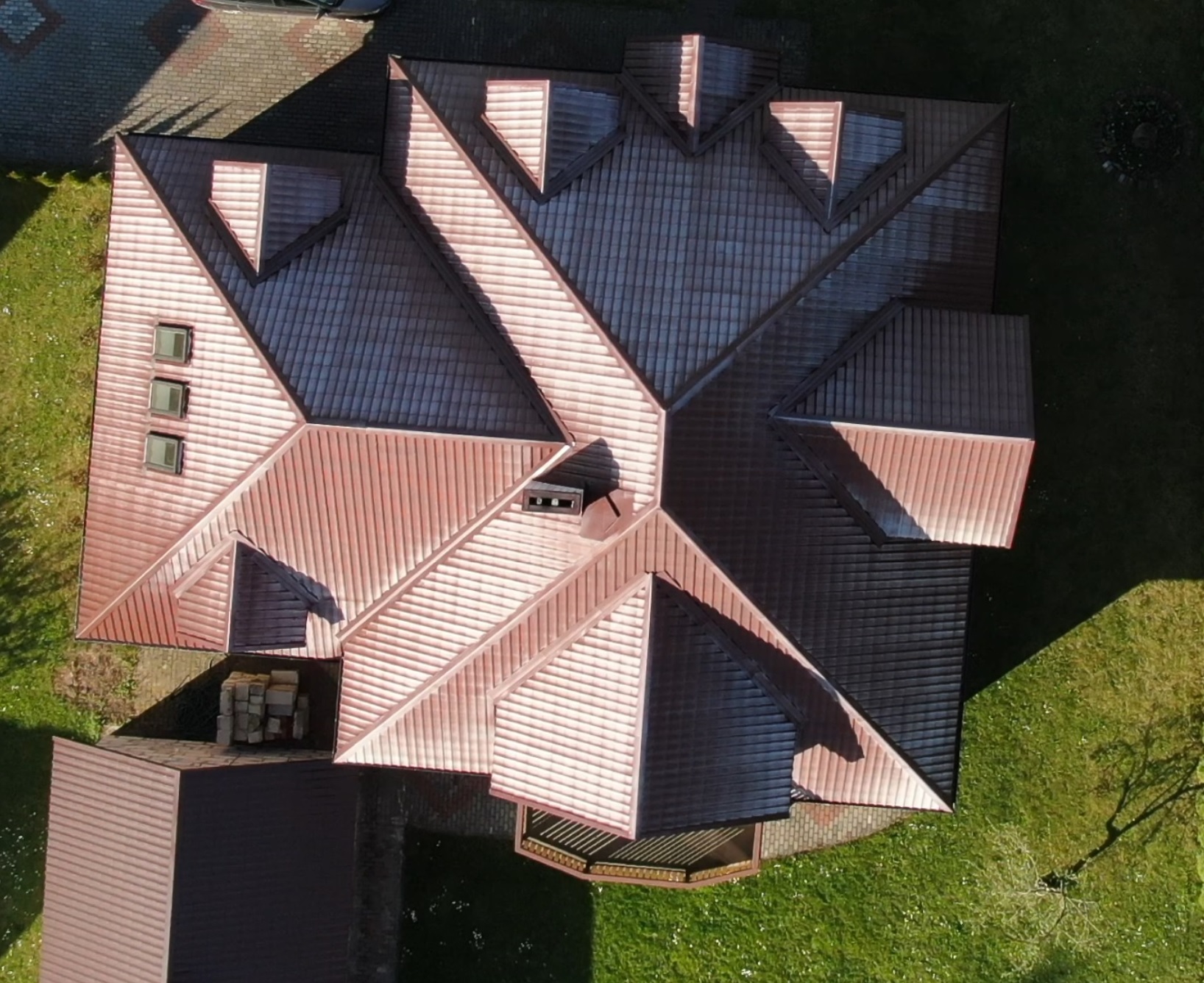 Plekk-katuse ülevärvimine (värv on pleekinud). Pindala: 374 m2. Originaalvärv: HPS200 (RR28).