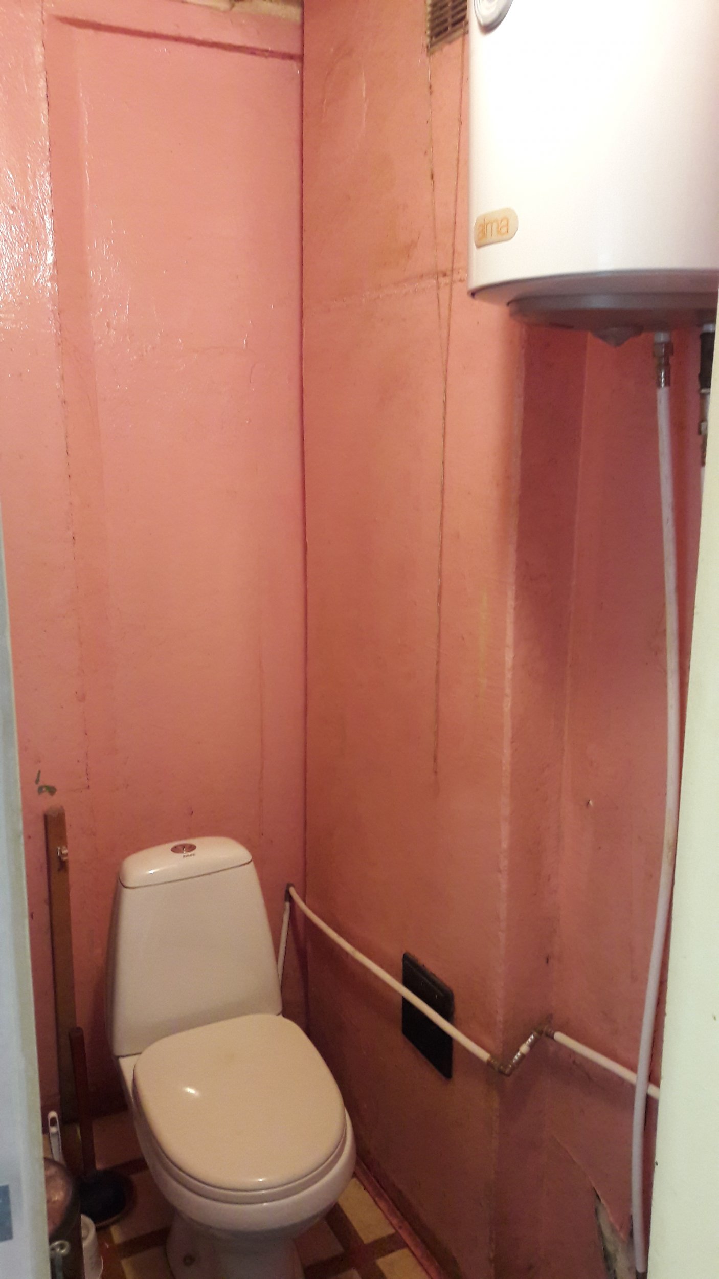 17) Põrandapealse wc-poti paigaldamine ja torustikuga ühendamine. Wc-poti asukoht jääb üldjoontes samaks, kuid oleks vaja viia see vastu tagaseina (hetkel jääb see seinast palju eemale - näha ka pildilt).