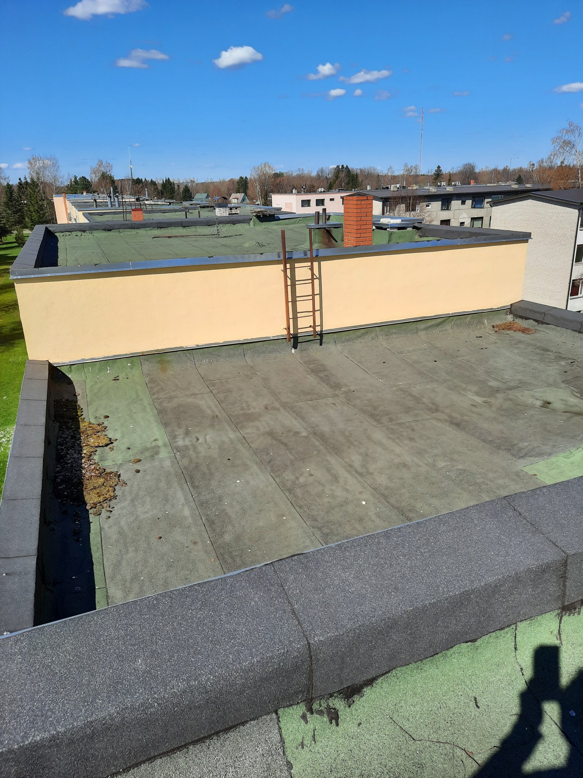 30 korteriga maja katuse katte vahetus (ruberoid katus).Katuse üldpind originaal projektil on 1366 ruutu.