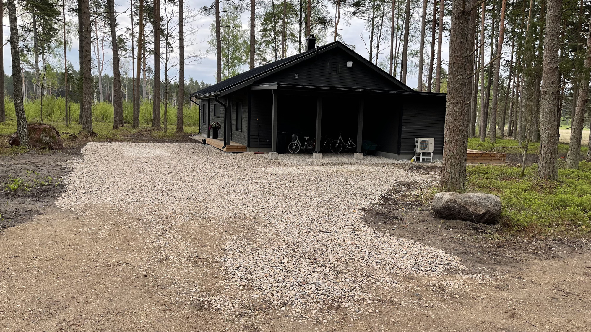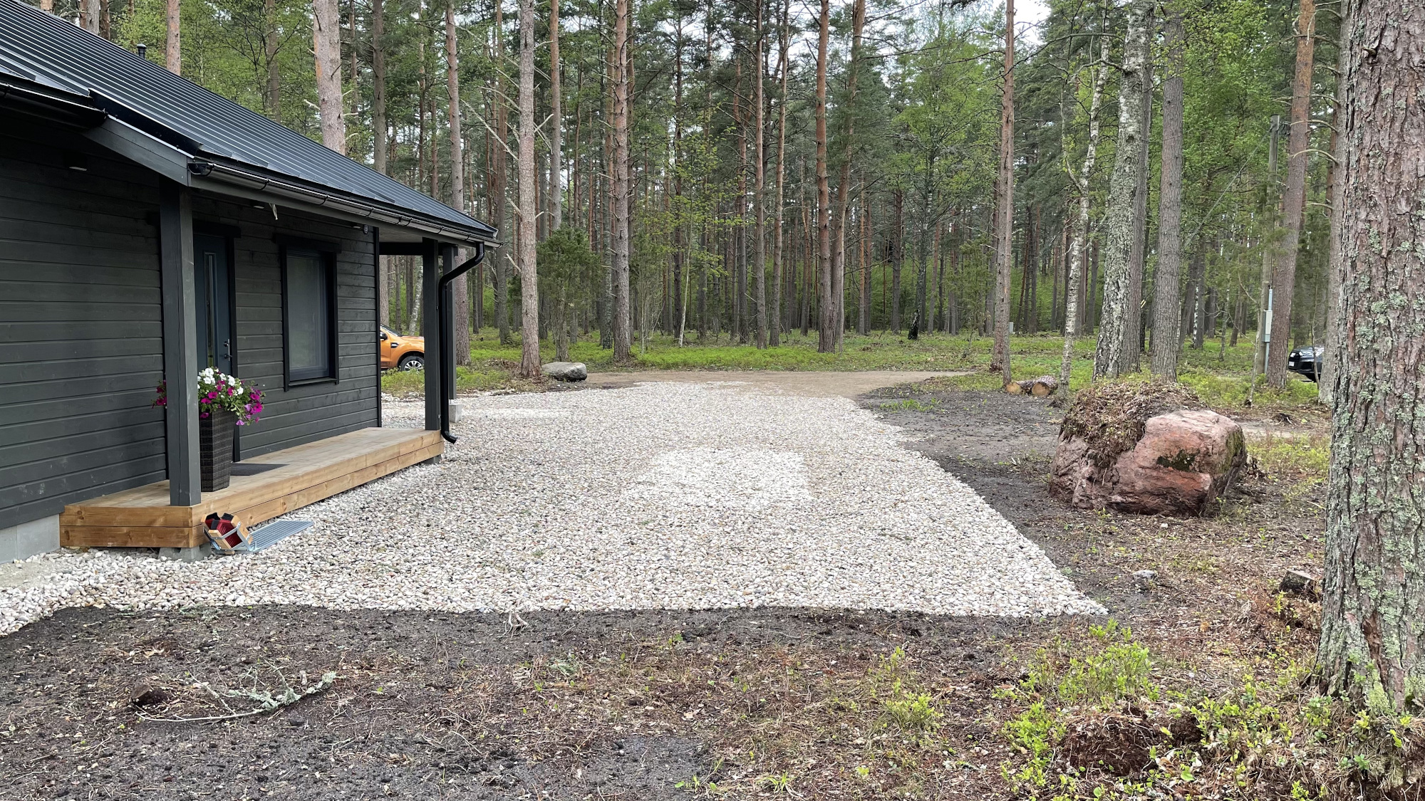 Aluspind on killustikuga kaetud, kuid vajab mõne nurga osas korrigeerimist ning ka liivaga katmist.