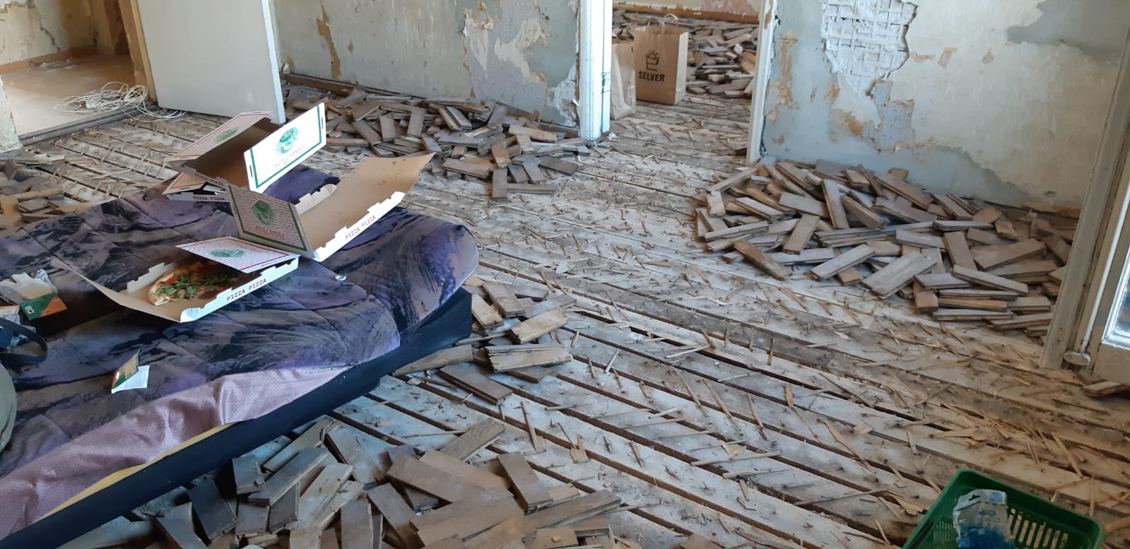Olemasolevad talad jäävad sisse, välja soovime vahetada vaid üksikud pehkinud talad. Alustalad teeme ise puhtaks (eemaldame ka naelad) ning viime eest ära kõik välja võetud vana parketi tükid.