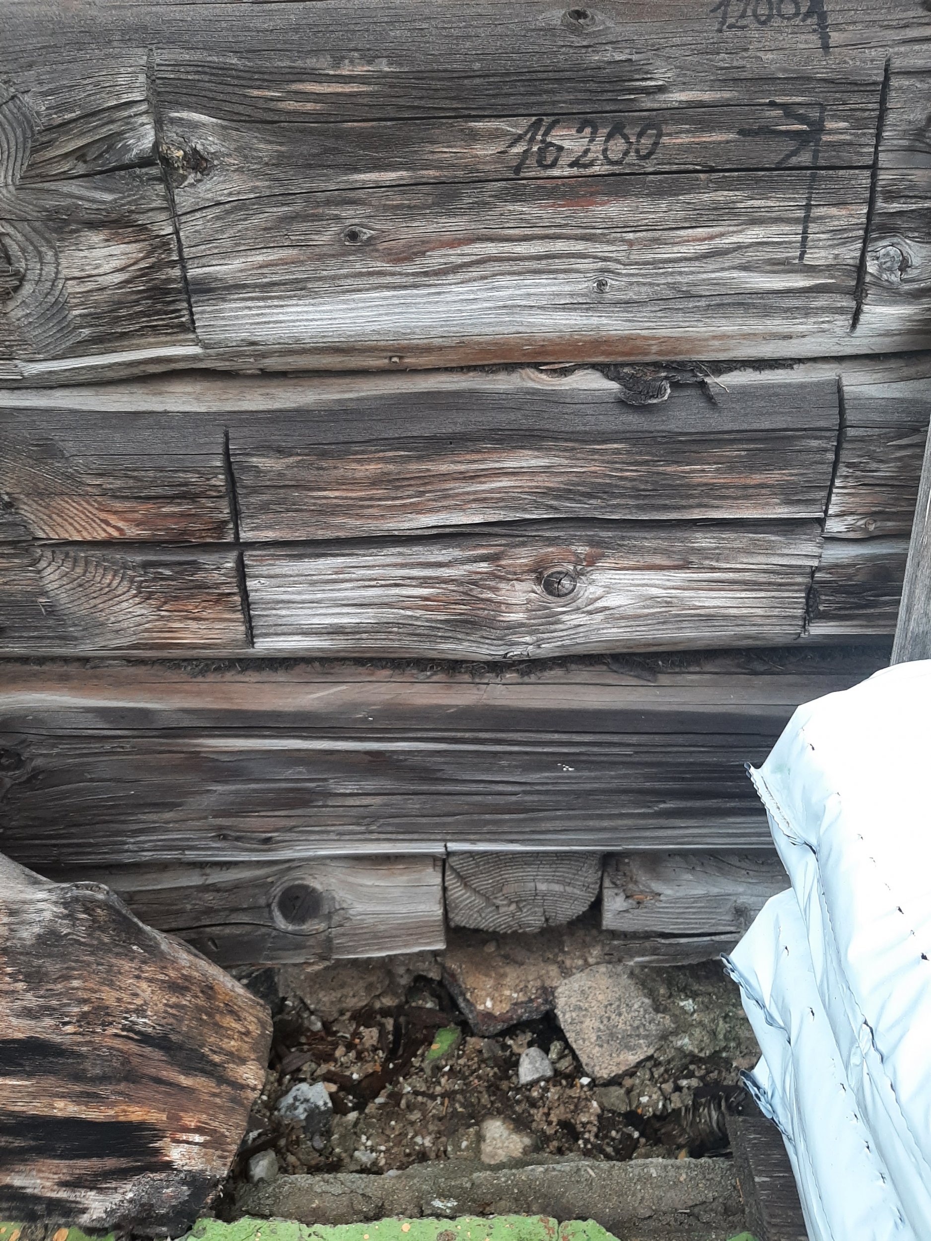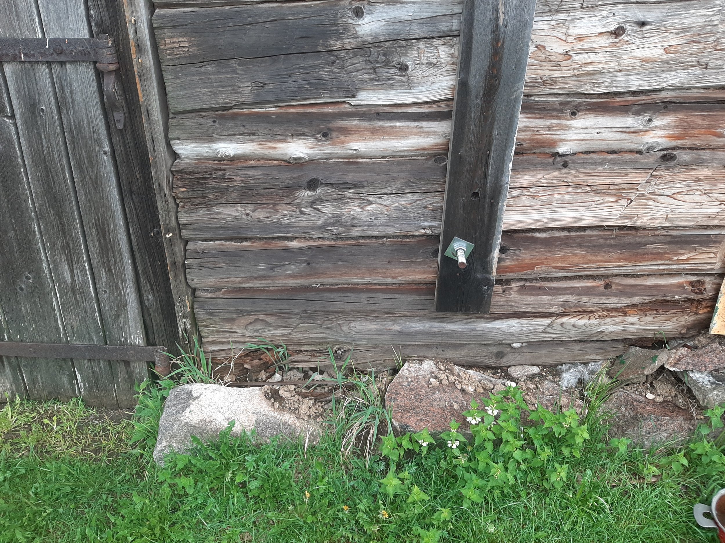 Maakivist vundament kohati laiali vajunud küüni osas ja alumine palk mäda.