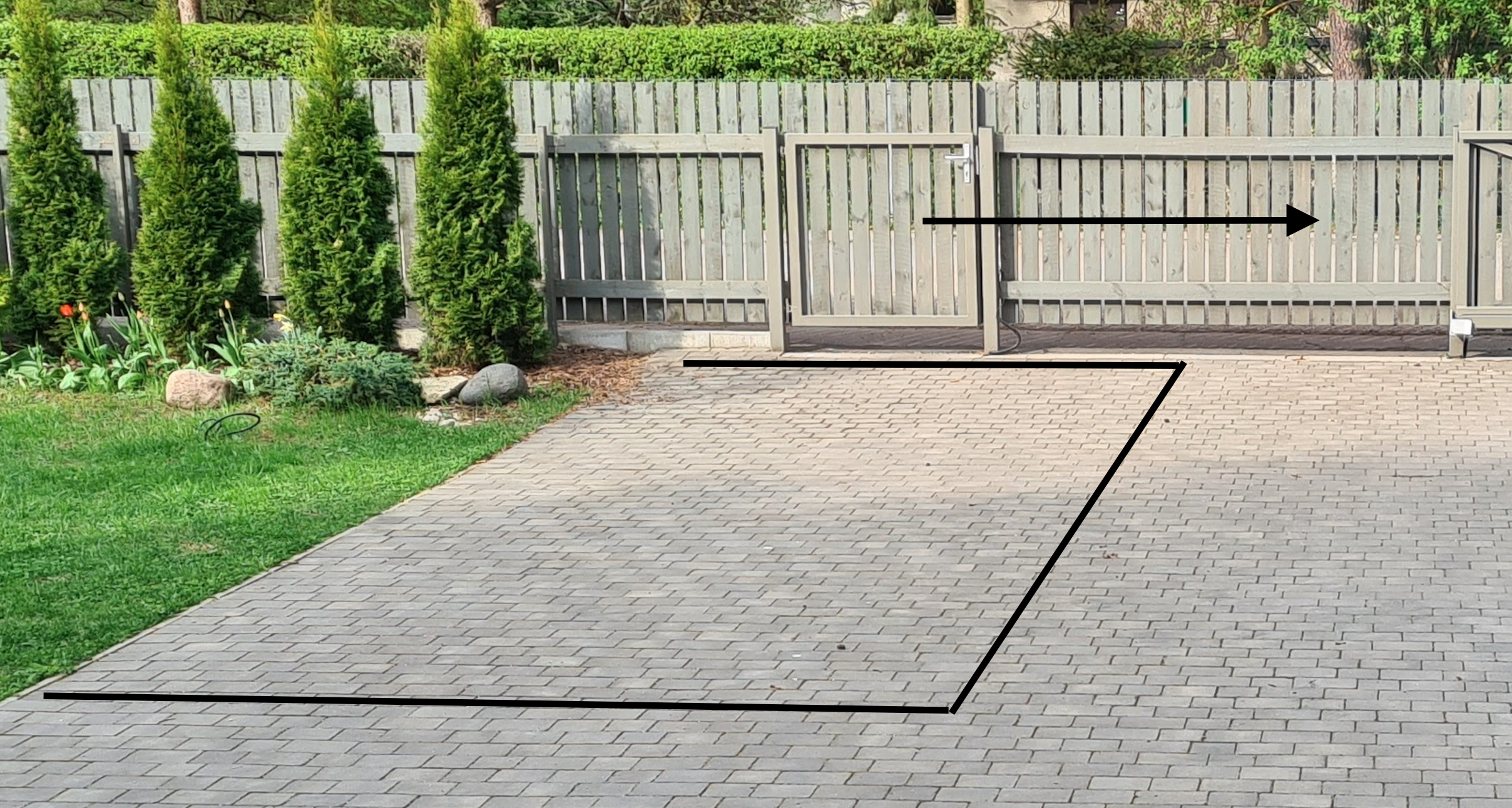 Aiavärava juurde trenaasi rajamine, et sõiduteelt kogunev vesi ära juhtida.