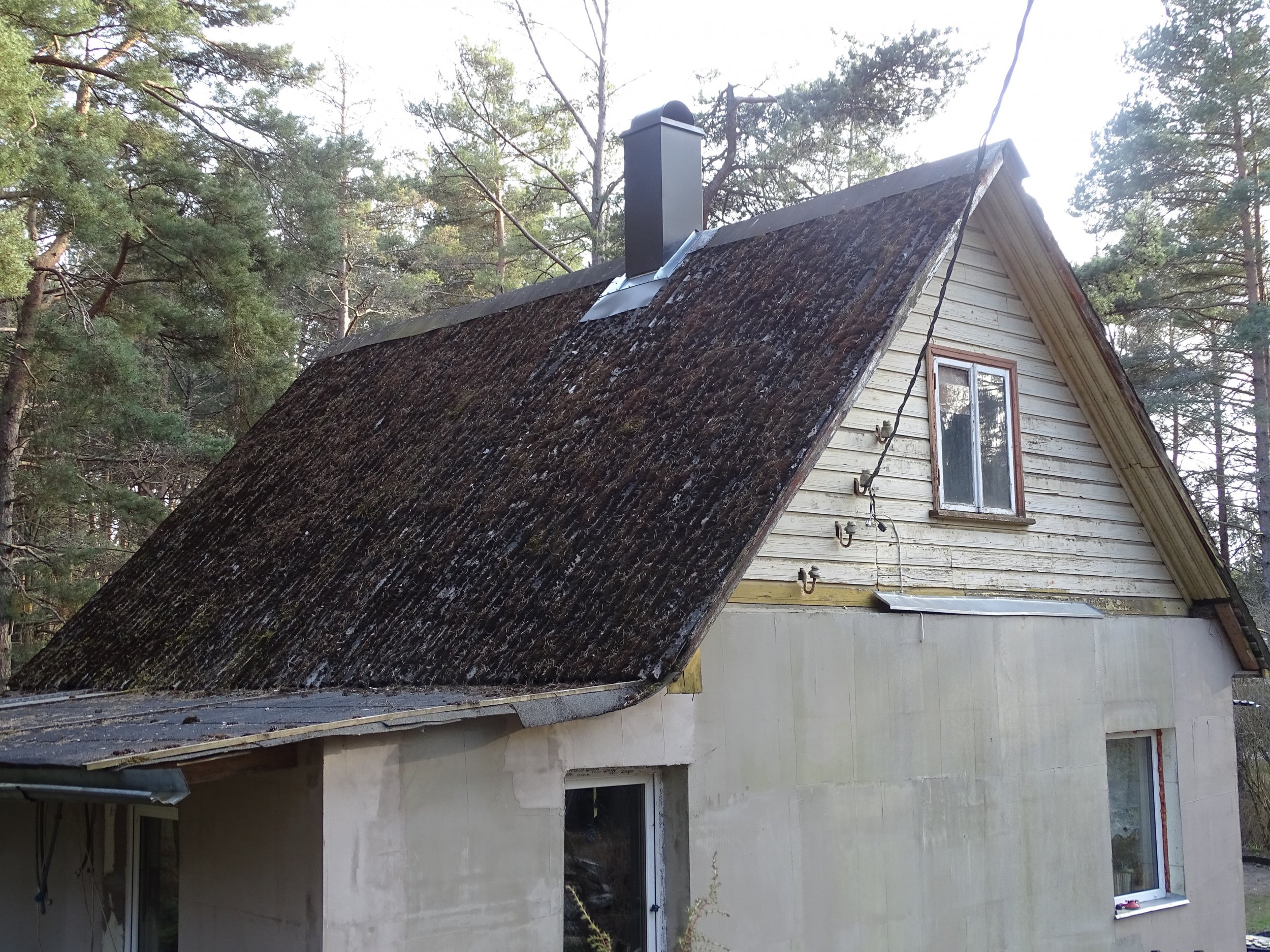 Eramaja katuse remont, vaja eemaldada vana eterniitkatus ning selle all olev laastukatus, välja vahetada katuse kandevkonstruktsioon (osad sarikad mädanenud). Seejärel paigaldada uus katus ja soojustada.