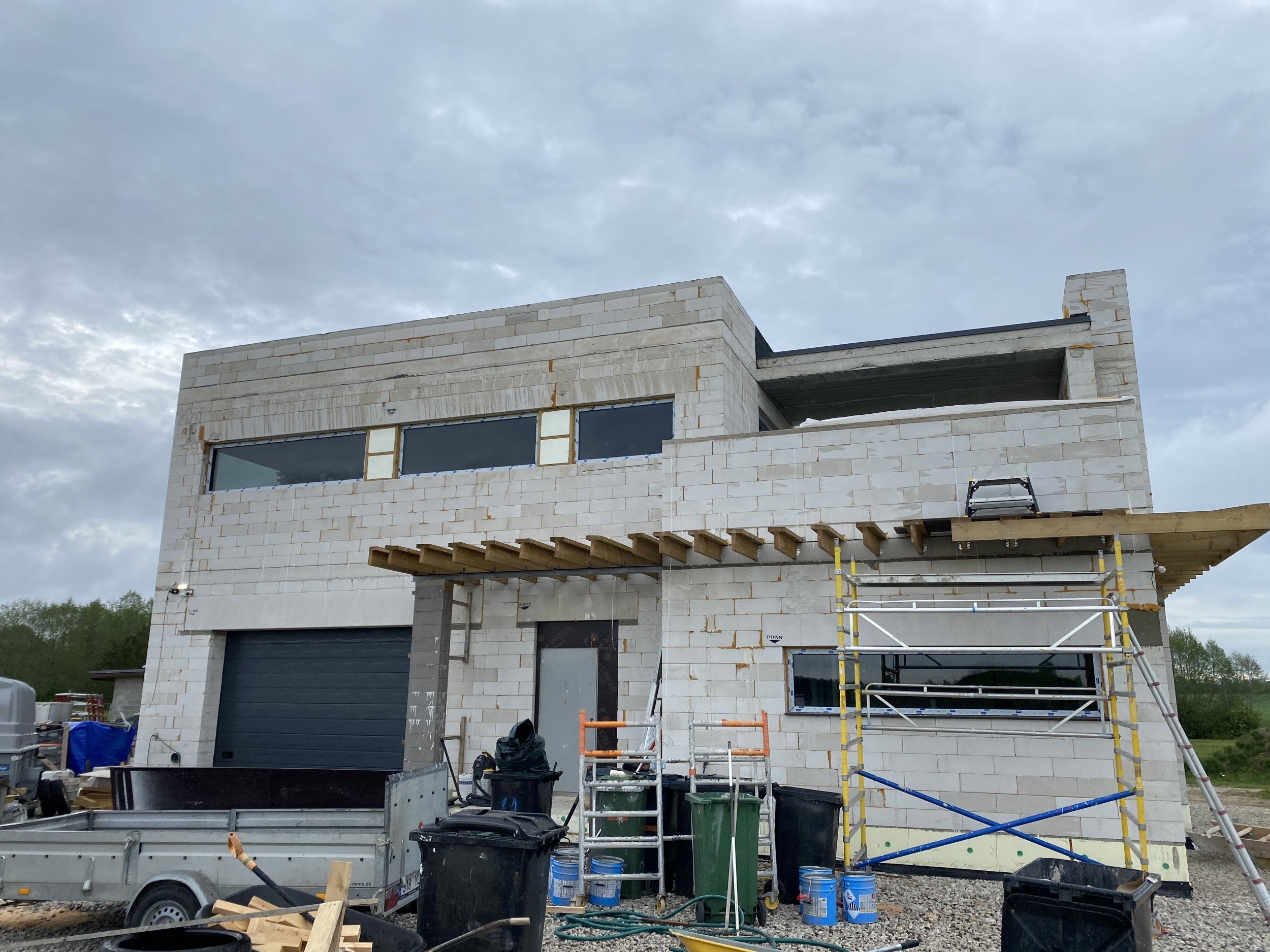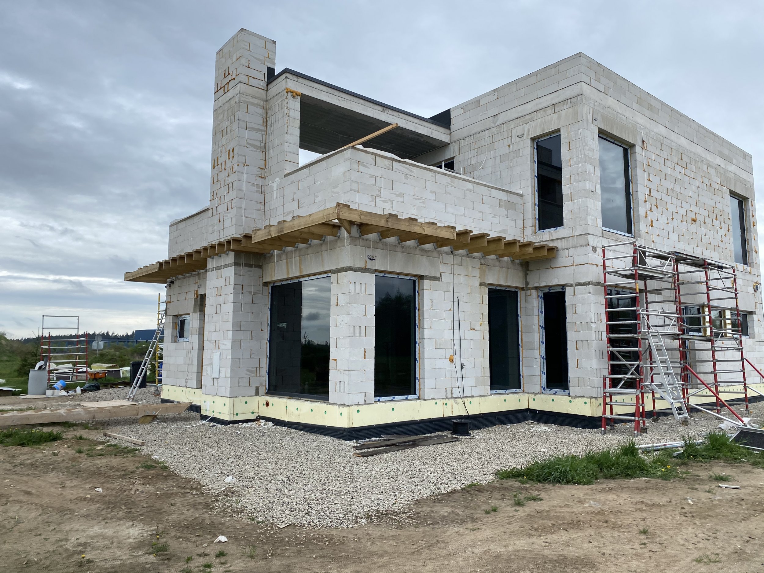 Maja körgem ja madal osa tulevad erineva tooniga. Valge-hall. Materjalid minu poolt.