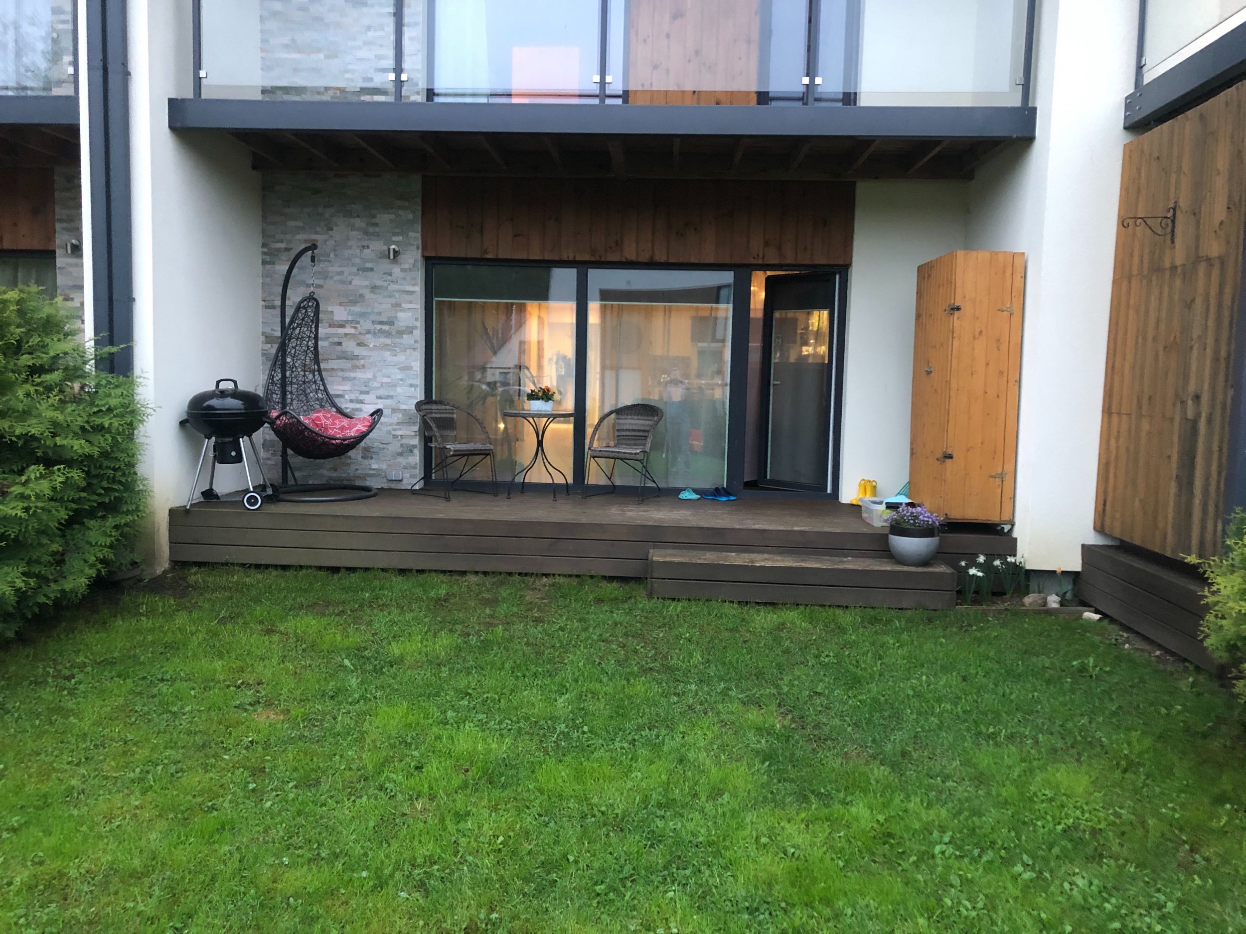 Terrassi juurdeehitus, laius 6000mm, sügavus 2000mm + lisaks kolme laua laiune aste, kõrgus maapinnast 400-450mm, materjaliks pruun immustatud 120mm laiune laud. tegemist ridaelamu boxi terassiga.