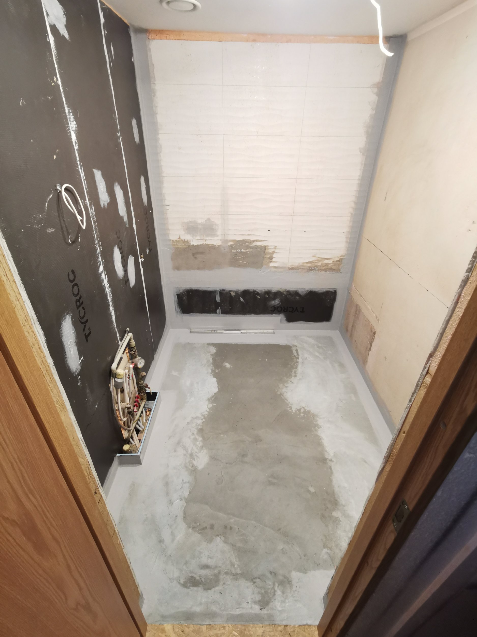 Duširuumi plaatimine Tallinnas. Põrand ja seinad. Ruum 1,8x2,2m, h 2,3m. Kogu ettevalmistus tehtud. Põrand ühe kaldega. Renntrapp. Elektripõrandaküte.