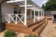 Soovime terrassi laiendada. Laienduse suurus 3,4x3,9 meetrit. Võimalusel ka katusealuse ehitus. Hea, kui pakkuja oskaks aidata katusealuse lahenduse osas ideedega.