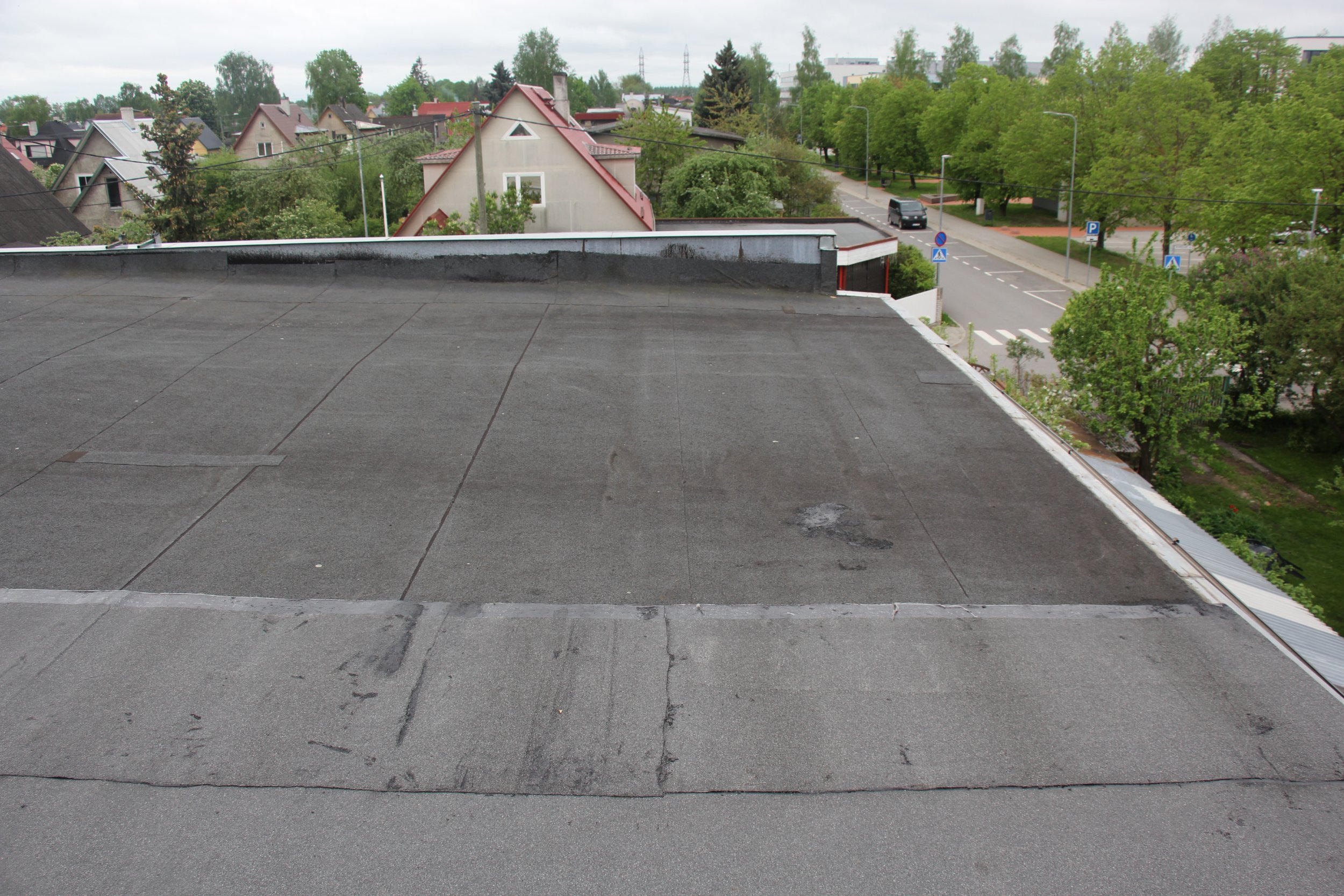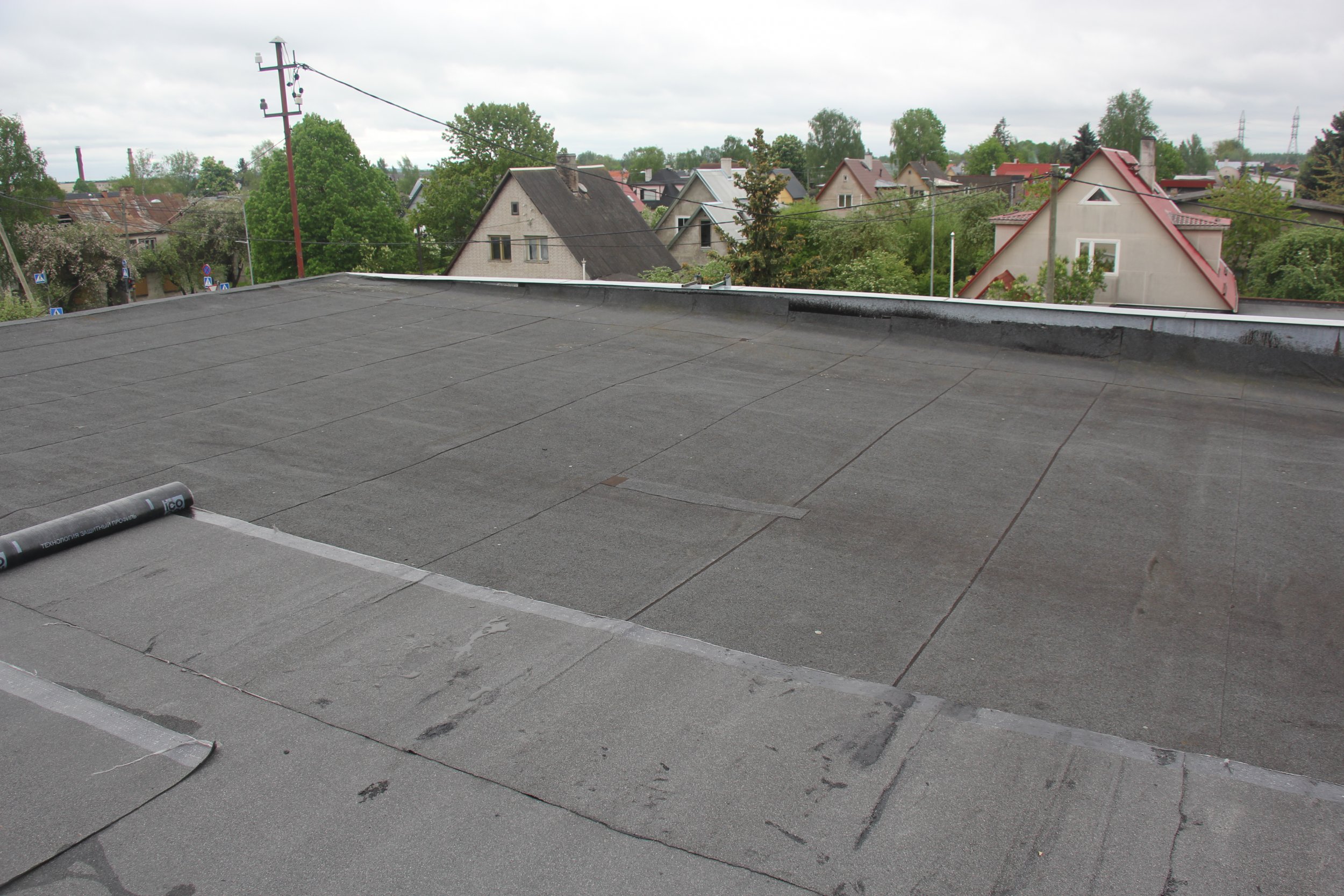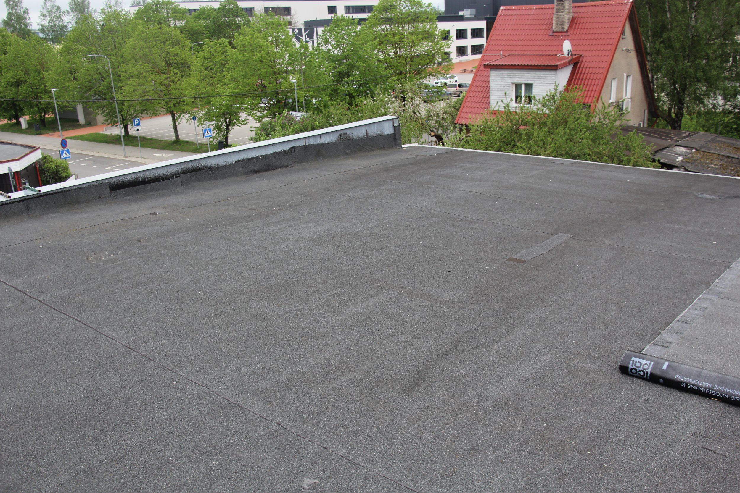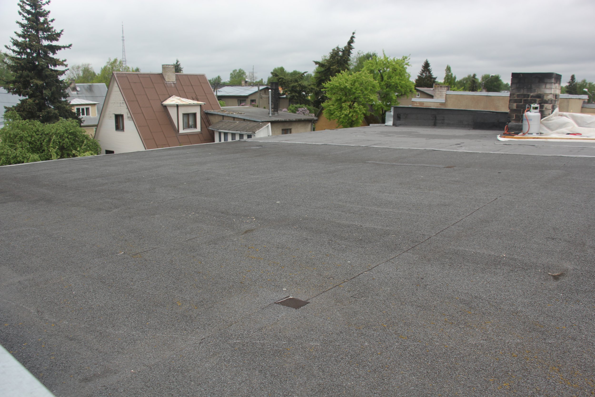 Töö ja materjal. Mädanenud kohtade avamine ja parandused. Pealiskiht EKP 5,0 kg koos paigaldusega. Tehniline propaan. Tõstetööd. Parapeti ja korstnaümbrise tihendamine. Alarõhutuulutid. Käibemaksu ei lisandu. Garantii 3.aastat.