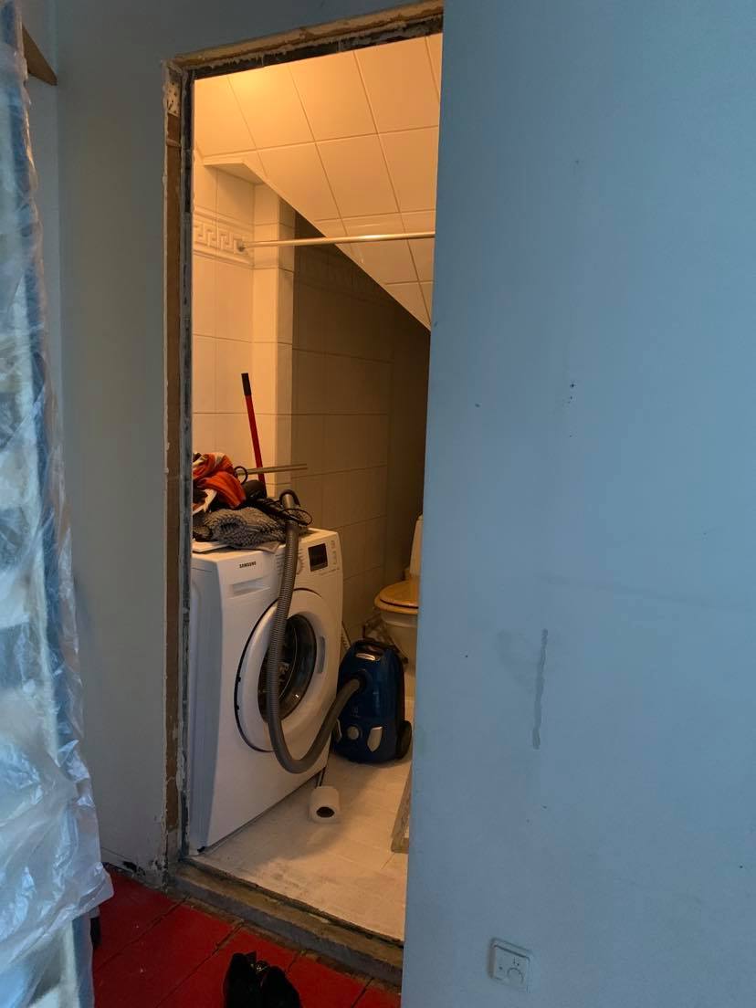 -klaasukse paigaldus + uksepaku ehitus (kõrgem pakk, kuna dusinurk on kohe ukse kõrval)