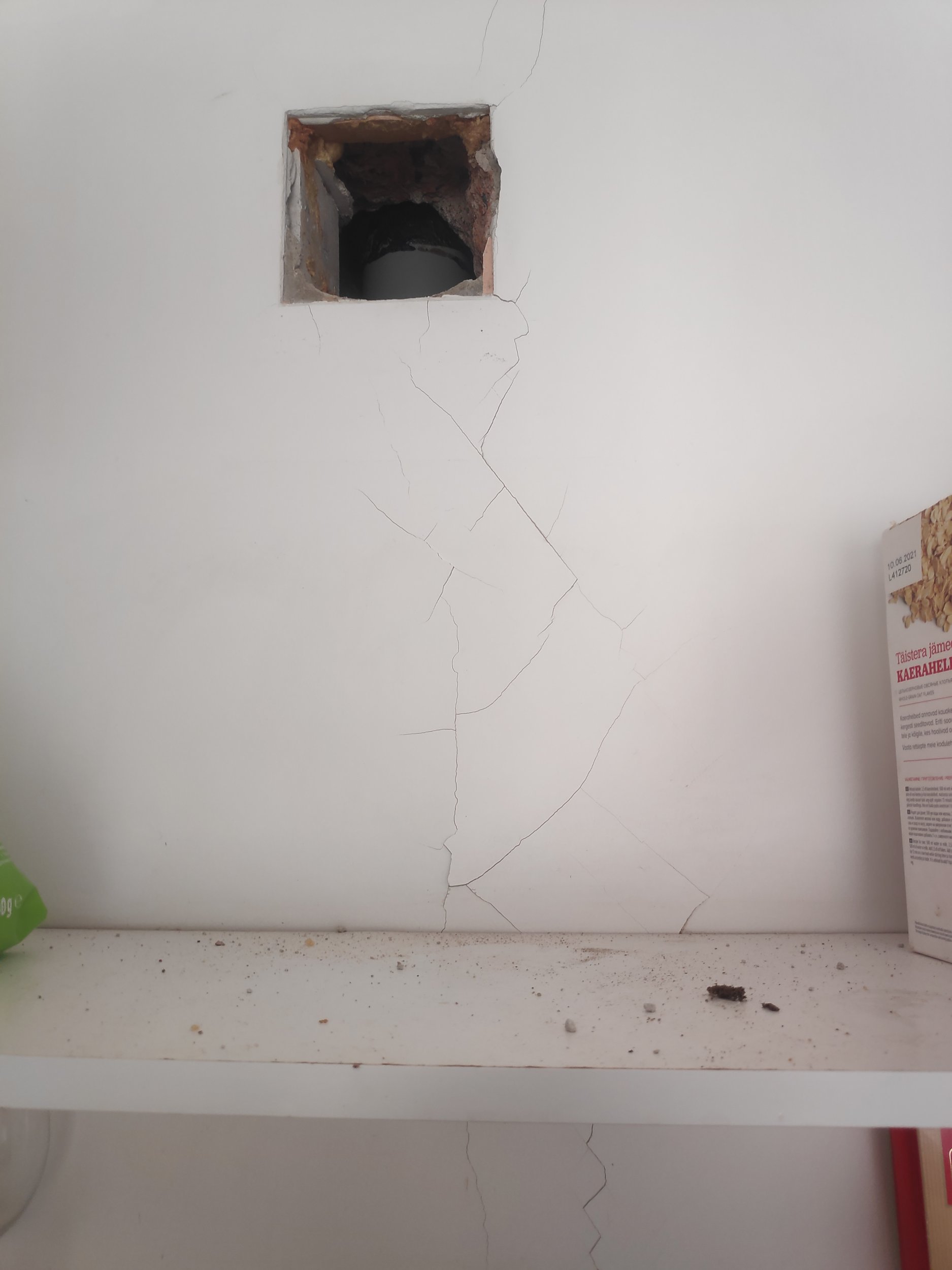 Paaris kohas laes ja mõnes kohas seintel on löönud prao (paneelide vahe). Need oleks vaja veidi lahti kiskuda ja pahteldada.