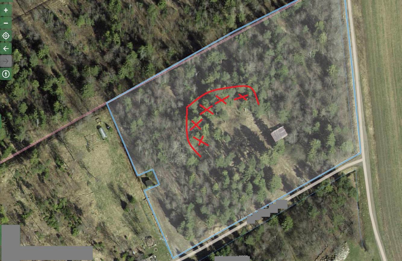 Pildil tuleks võsa välja juurimine teostada siis joone all olevast X kohtadega märgitud kohast.