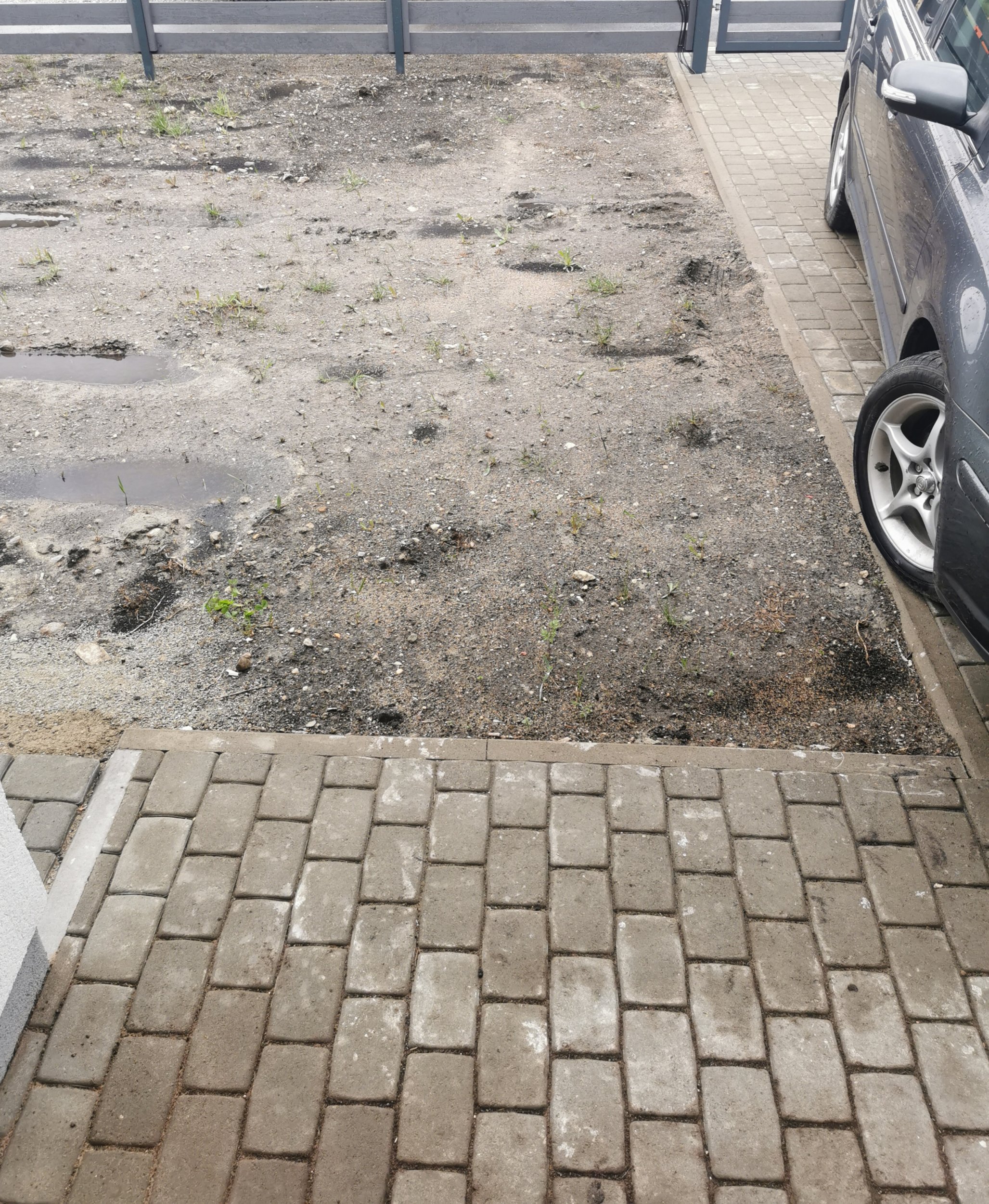 Vaja on laiendada maja ees olevat tänavakividest platsi, teha jalgrada 1m laiune ning jalgraja lõpus väikene kividest plats. Kokku hinnanguliselt 55 ruutu. Pinnast krundilt ära ei pea viima.
