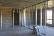 Ridaelamus kipslagede paigaldus - karkass ja kips, kahel korrusel kokku ca 84m2. Piltidel punasega markeeritud toad, koridor ja trepihall.