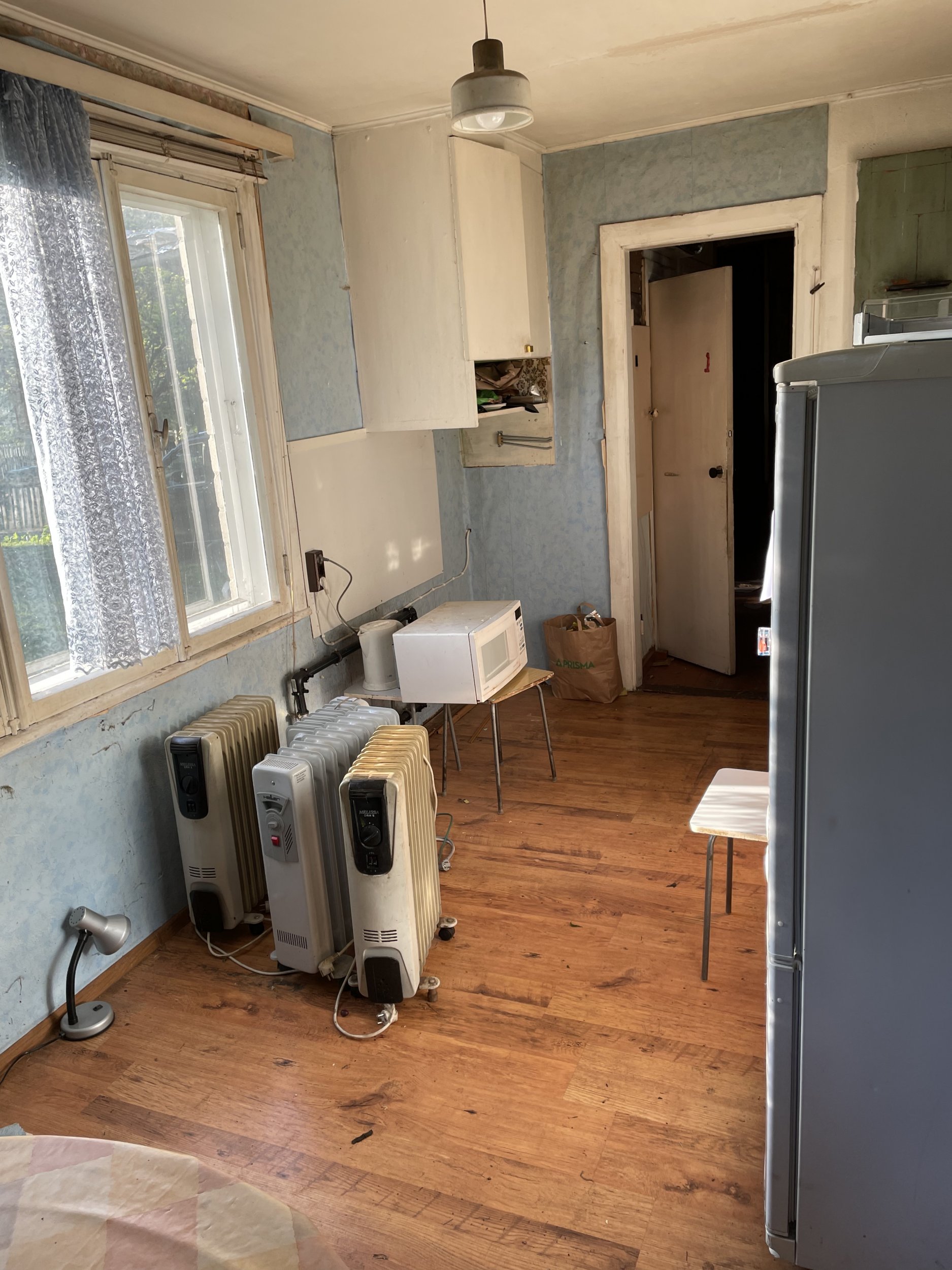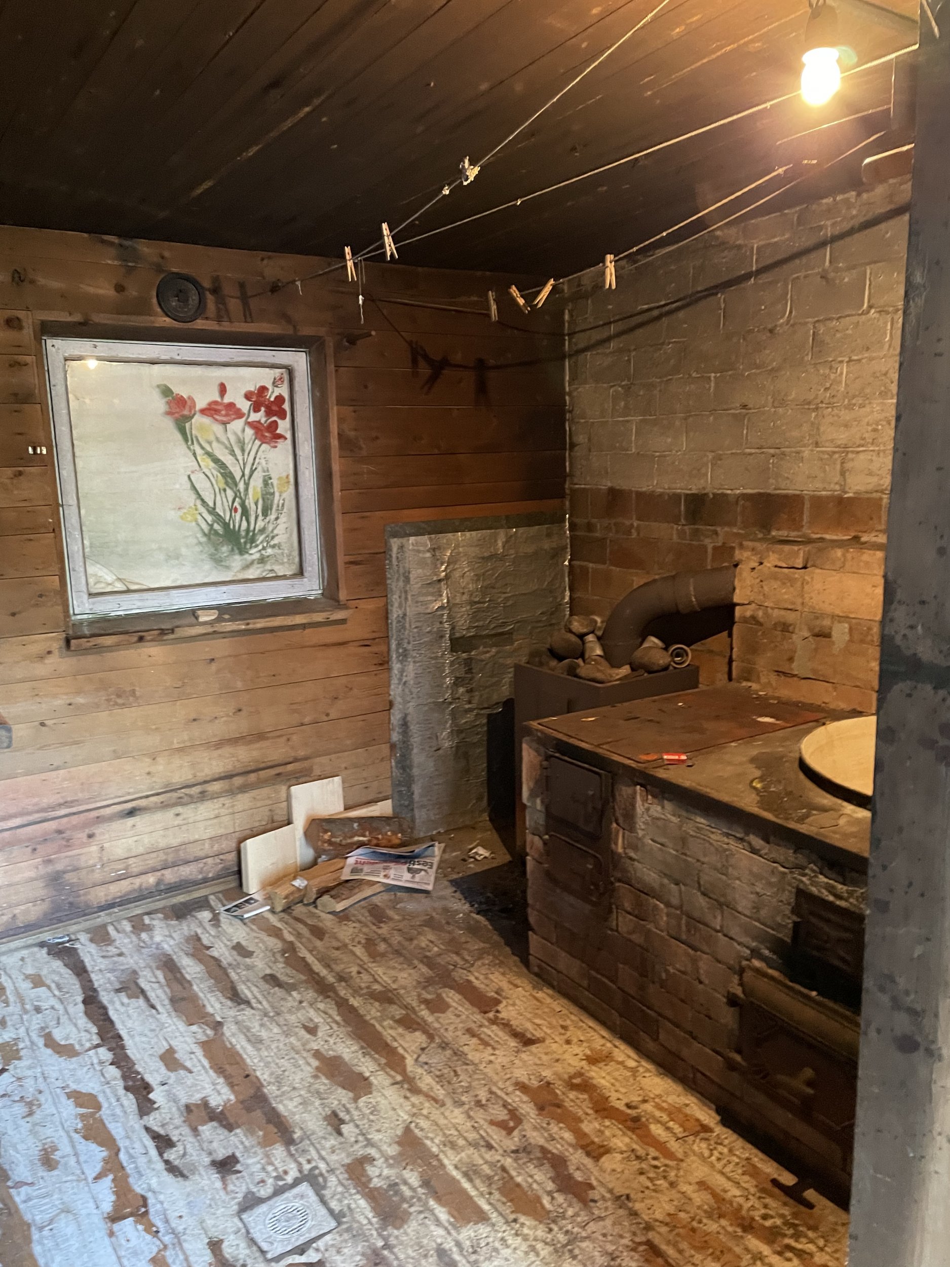 Maja seest kõik puhtaks kuni kandvate konstruktioonideni (ka lae- ja põrandalauad). Välja lõhkuda kaks pliiti, ahi, pioneerpliit ja soemüürid. Kokku kahel korrusel ~160m2. Tekkinud jäätmete utiliseerimine.