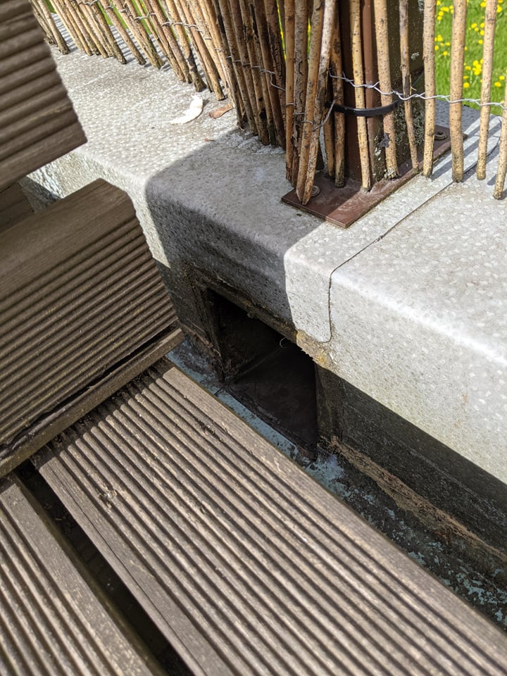 Katusel on metallist piirded, mis tuleb tööde ajaks eemaldada ning hiljem tagasi panna. Samuti on katusel puidust terrass, mis tuleb lammutada ning utiliseerida. Katusel on kaks sadeveelehtrit.