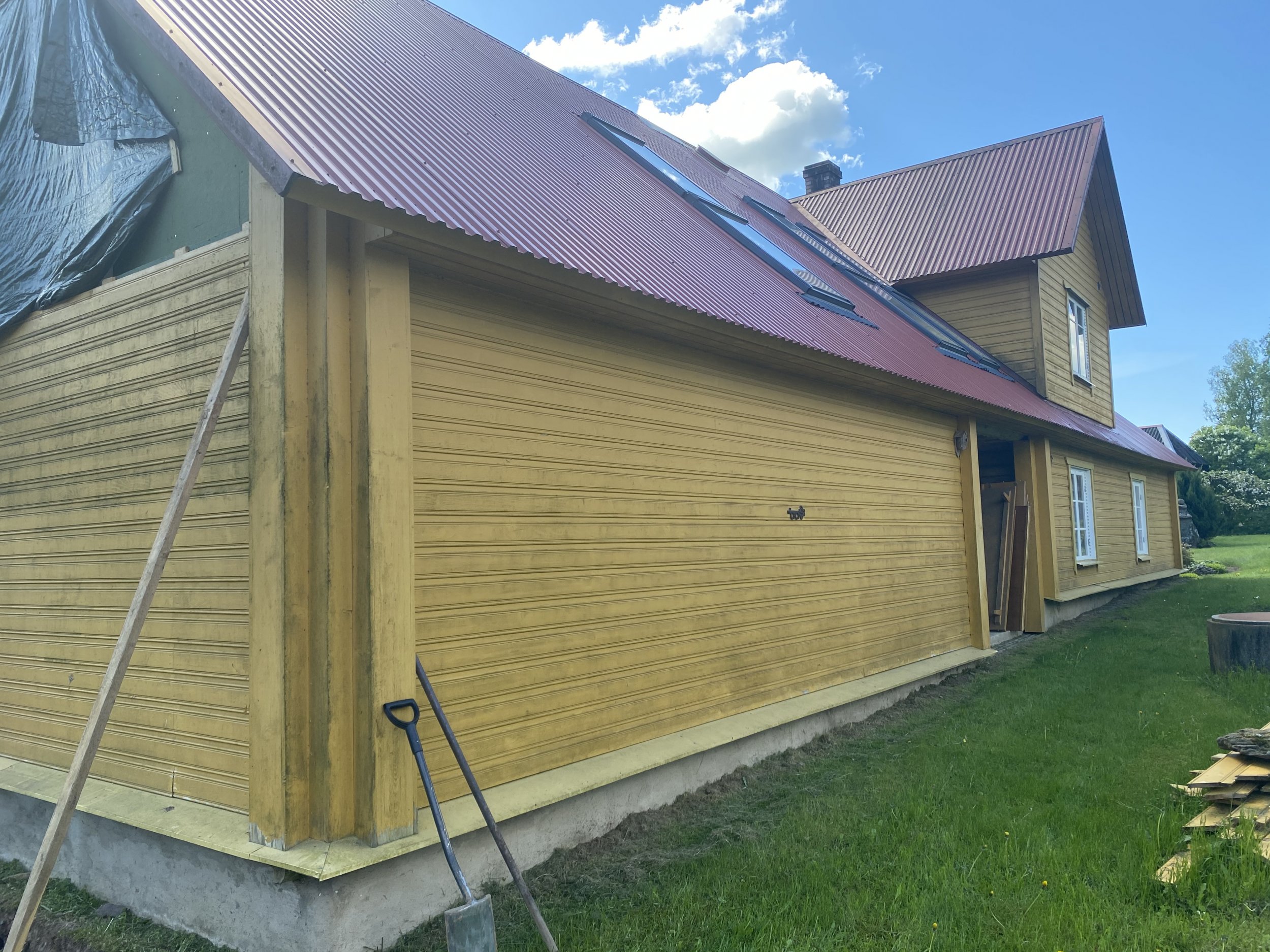 1. Puitfasaadi pesemine, vajalikest kohtadest vana värvi eemaldamine