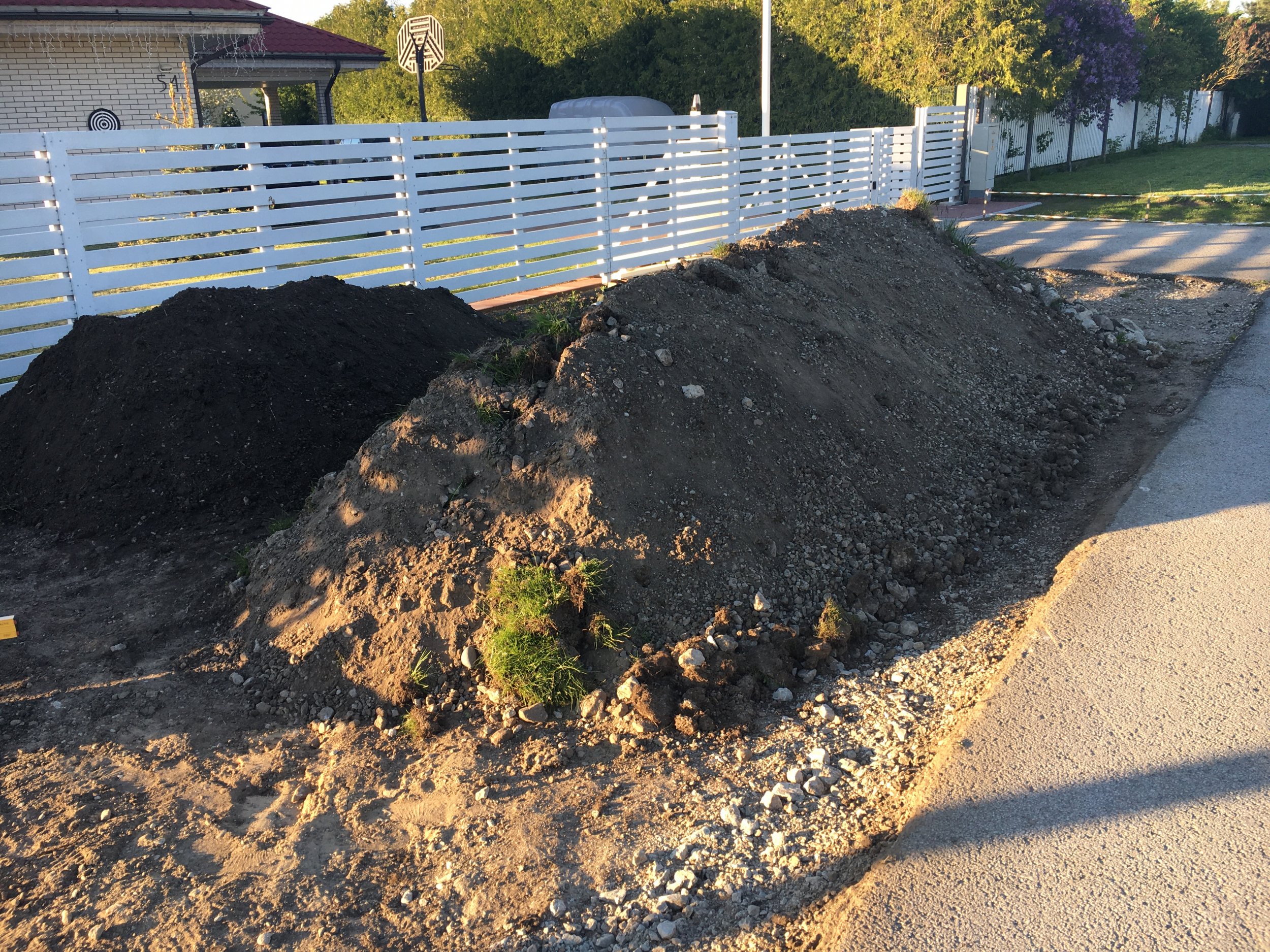 Väljakaevatud pinnase - mättad, muld ja kivid - äravedu krundi ees olevalt haljasalalt. Pinnase kogus on hinnanguliselt 9-10 m3, vt ka fotot.