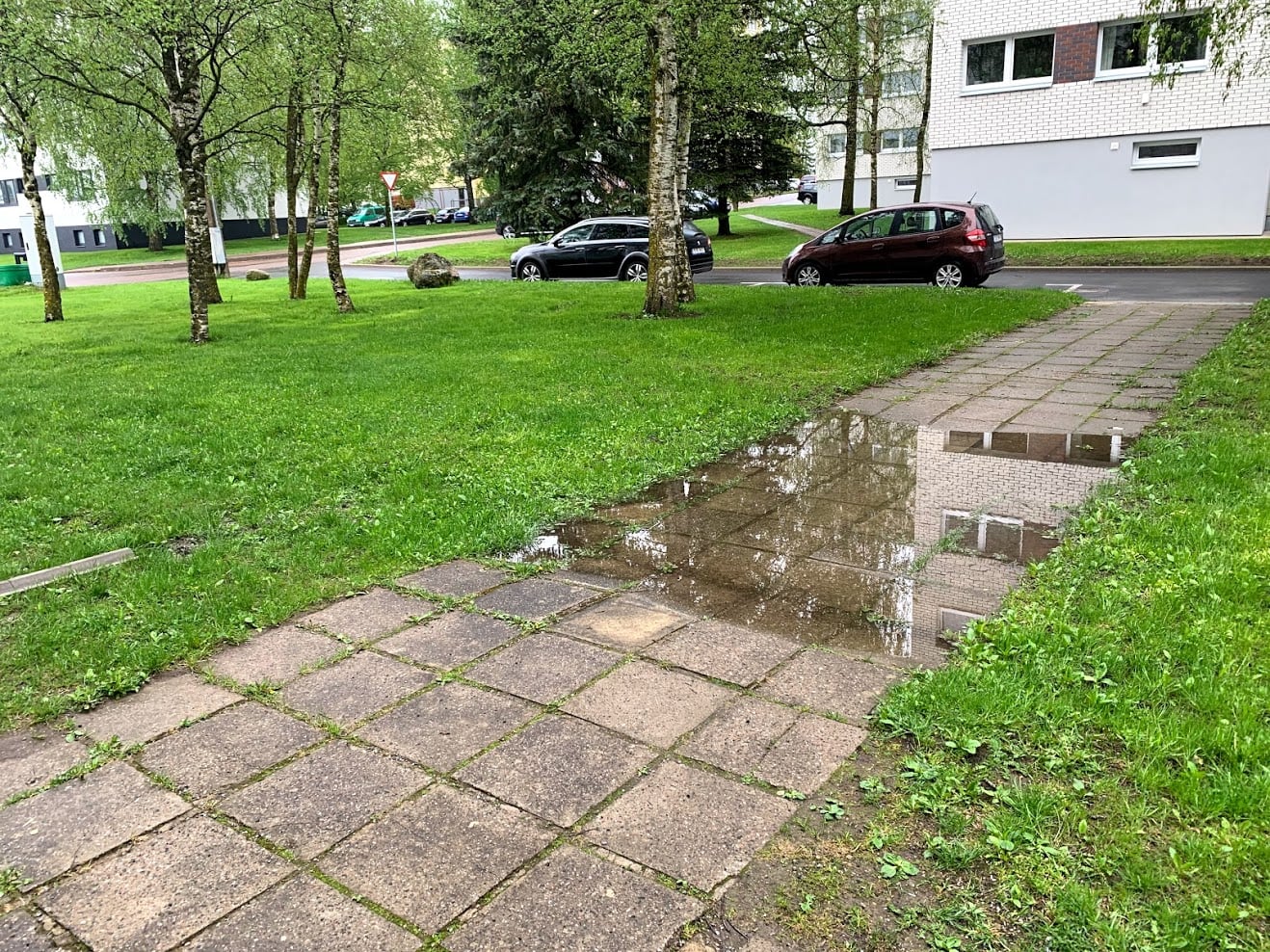 Nõukogudeaegsed kõnniteekivisid on kohati ära vajunud ja vihmaga tekivad läbimatud lombid. Vaja oleks pinnast nii palju tõsta, et kõnnitee ei oleks enam lohkus. Kokku on kõnniteede pindala 265m2. Kõige rohkem ära vajunud koht on pildil.
