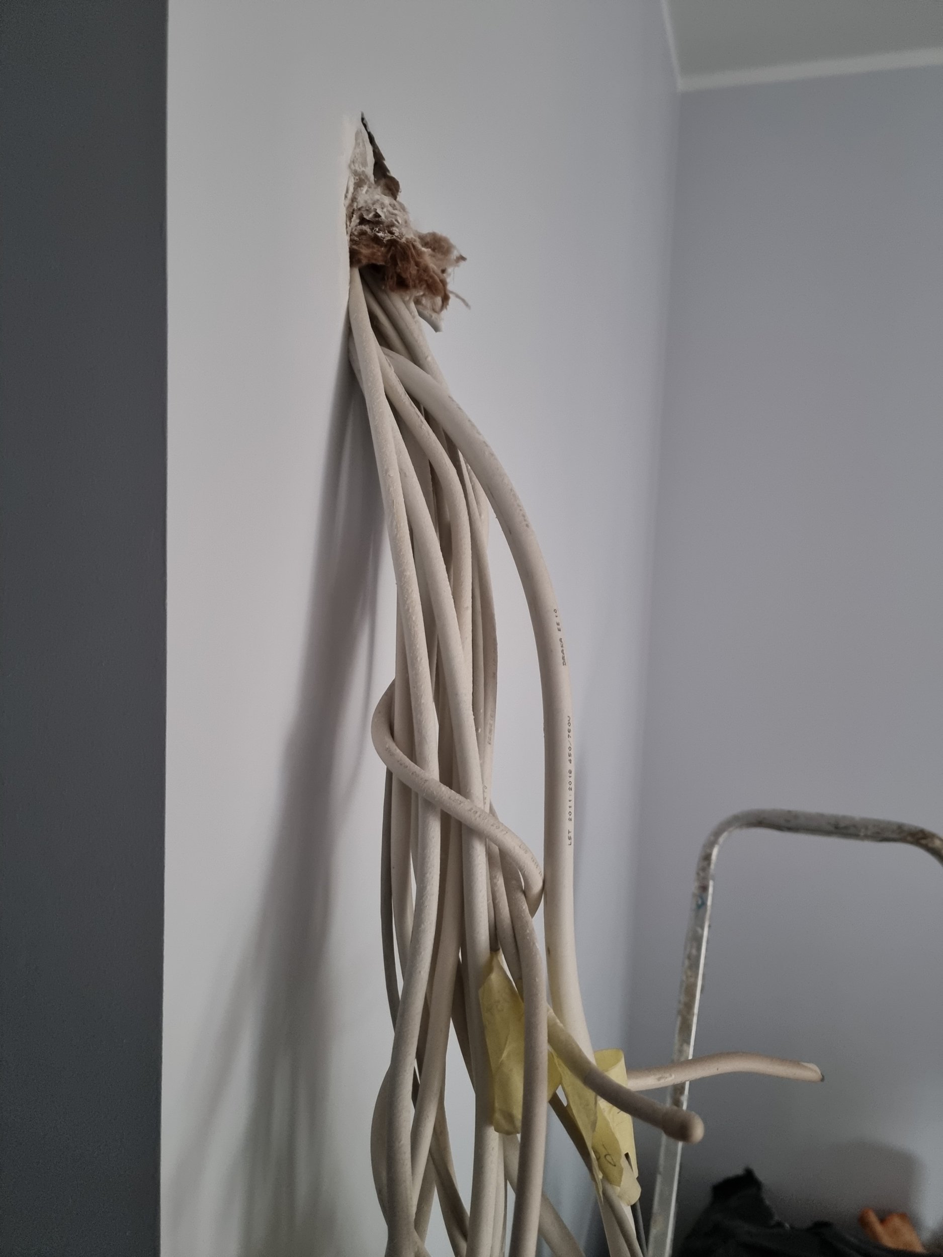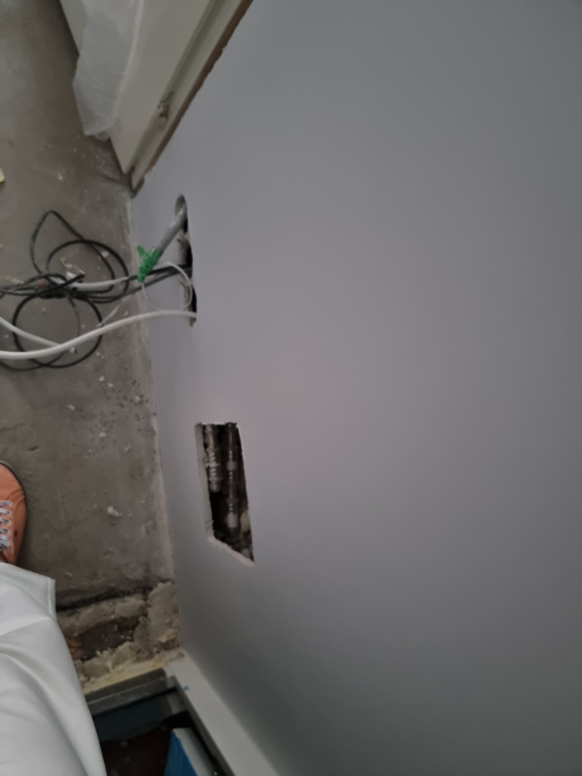 2. отремонтировать стены (гипрок). Закрыть отверстия для труб и электрики в неправильных местах, сделать отверстия в правильных местах, ошпаклевать и покрасить