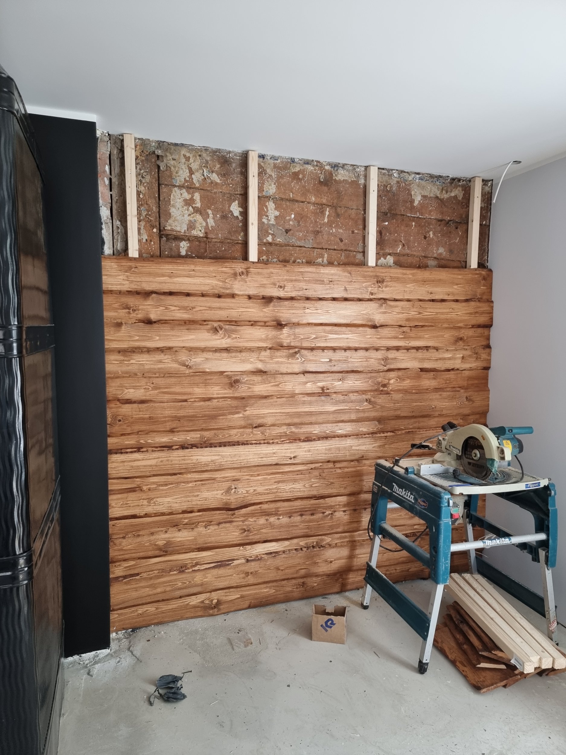 7. установить на гипрочный потолок 4 потолочные балки (дерево). Балки фрезеровать под ЛЕД-ленты. Обработать OSMO