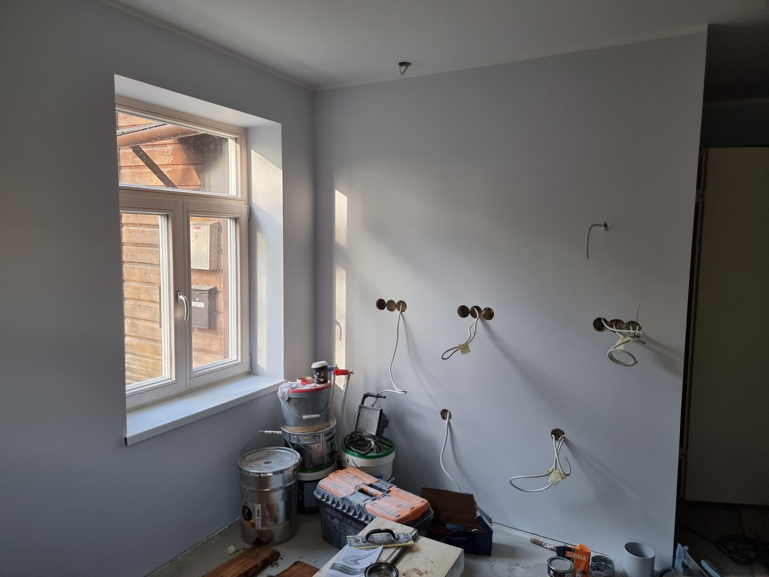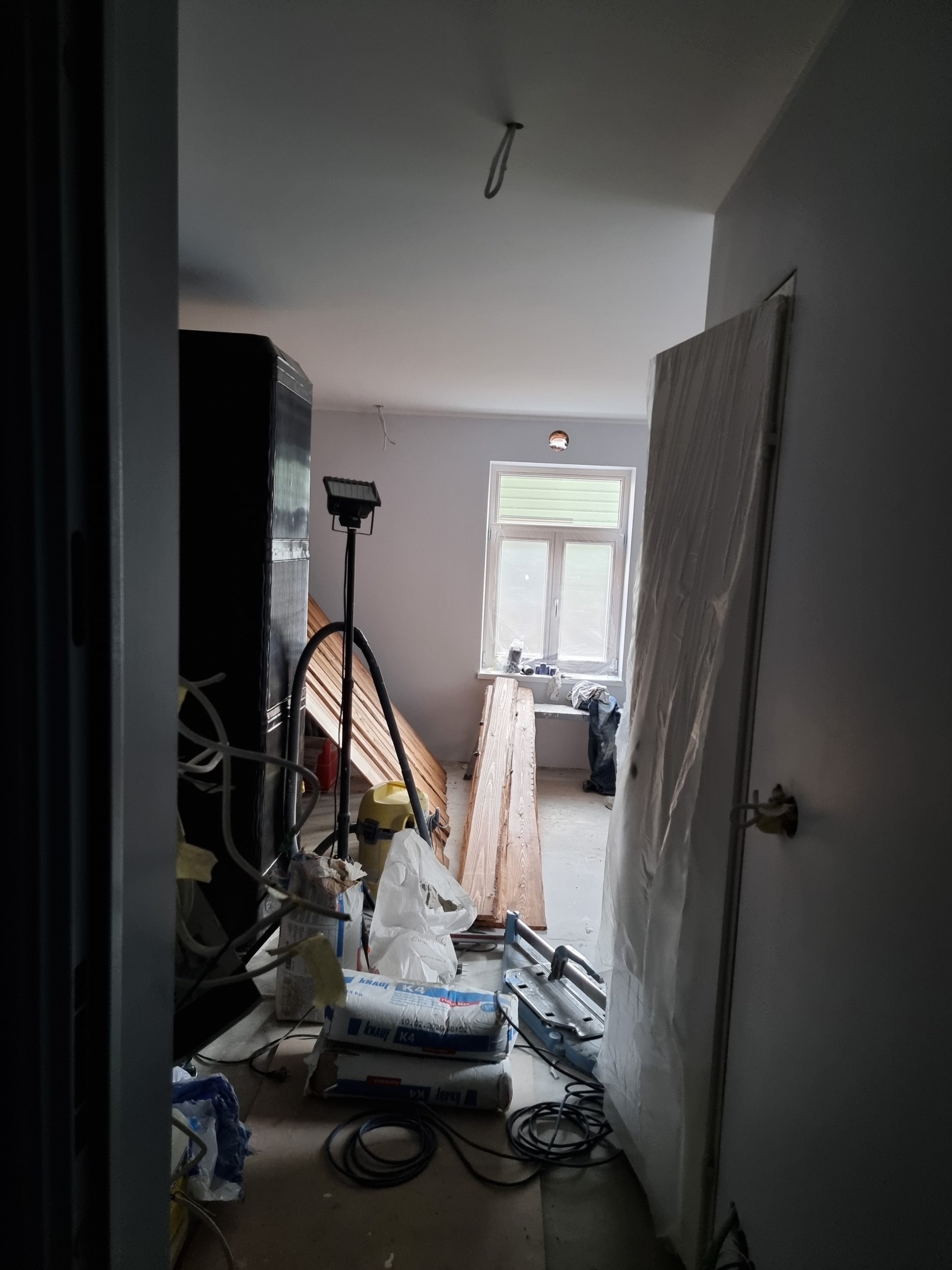 Tuleb parandada endise ehitaja ehitustööd (põrandad, laed, seinad) ja viia remondi lõppuni.