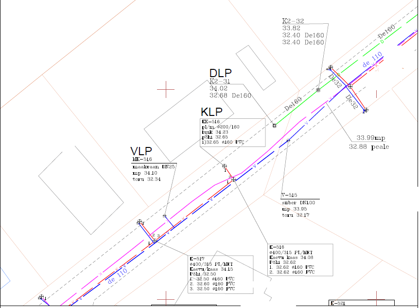 Sisaldab vee- ja kanalisatsioonitorustike kinnistu projekti PP staadiumis ja ehitusteatise koostamist. Töömahu piiriks on liitumispunkt kuni hoone välissein. Ei sisalda geodeetilist mõõdistust.