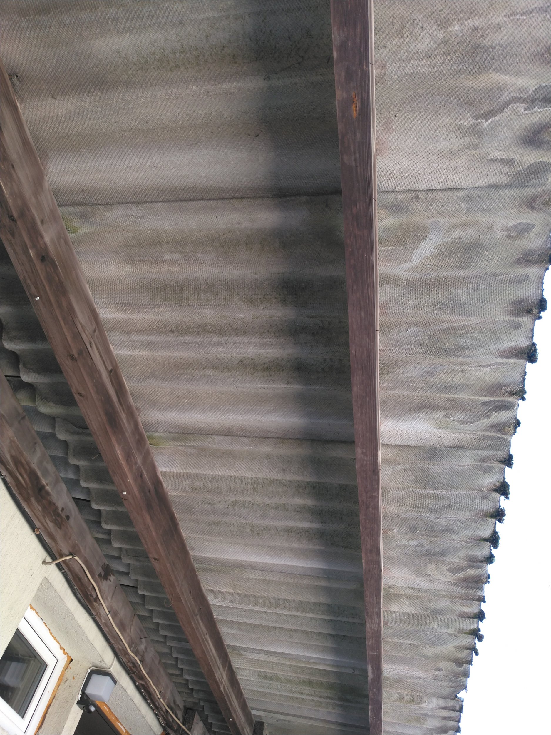 Veranda katuse pindala 2000x20800. Vana eterniidi eemaldame ja utiliseerime ise. Veranda katuse kalle tõsta samale kraadile suure katusega (nt telliskiviga). Keskmise tala võiks eemaldada, uued sarikad, lauad. Eterniidi paigaldus (nt Leedu eterniit, pruun).
