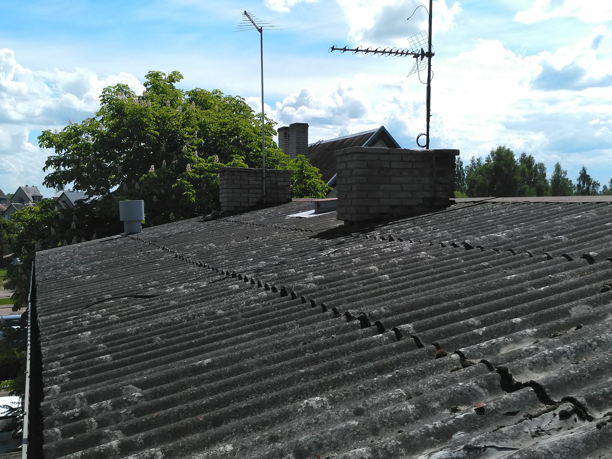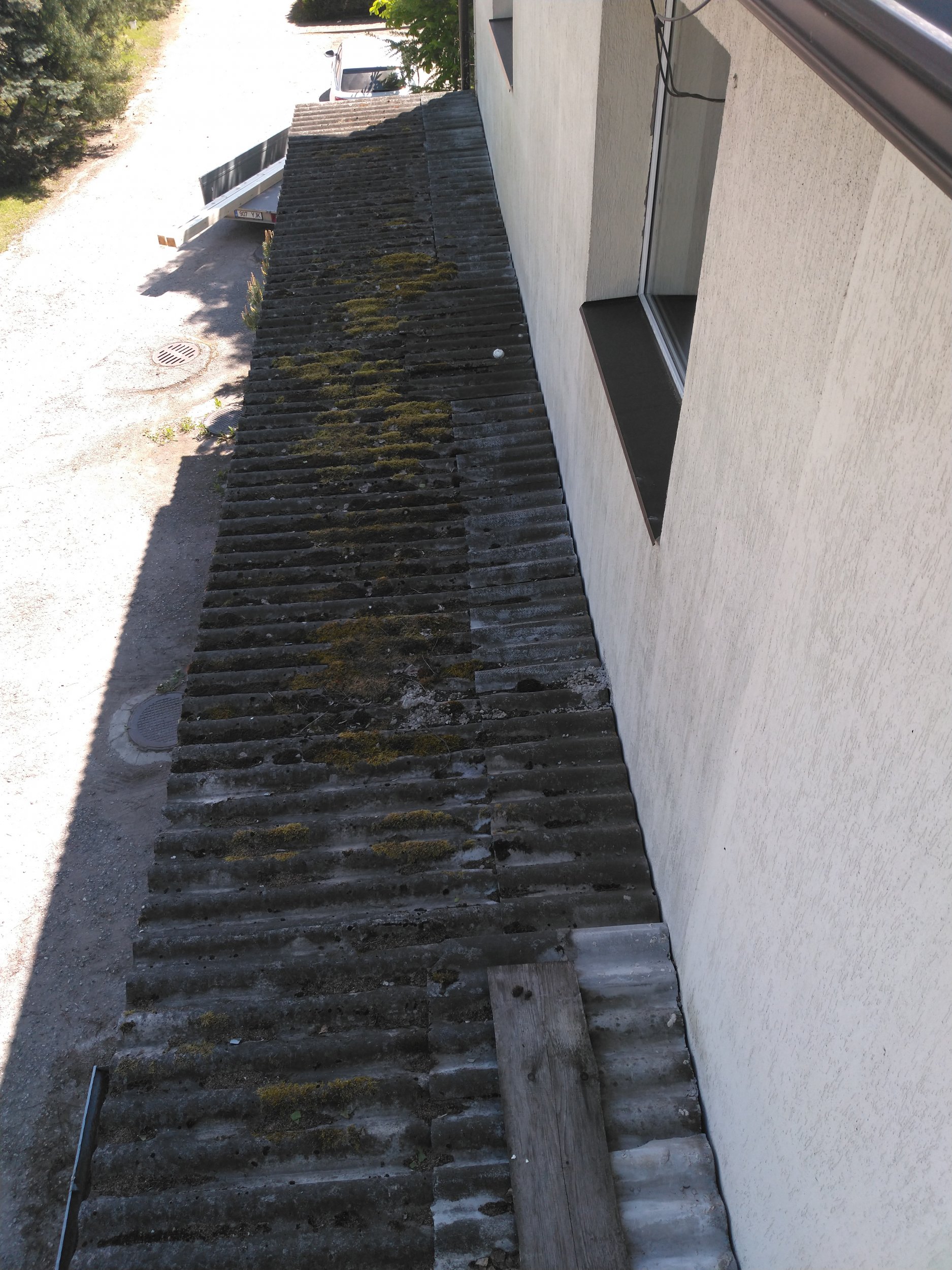 Katuse pindala 9000x21500. Vana eterniidi eemaldame ja utiliseerime ise. Vanad antennid lõikame maha ise. Uuesti laduda katusest väljaulatuv korstnapits x4. Vajadusel katus loodida, paigaldada lisatalad, aluskate. Eterniidi paigaldus (nt Leedu eterniit, pruun). Vana tuulekasti demonteerimine, uue ehitus ja kruntimine. Maja idapoolsesse otsa redel maast katusele. Katusesild.
