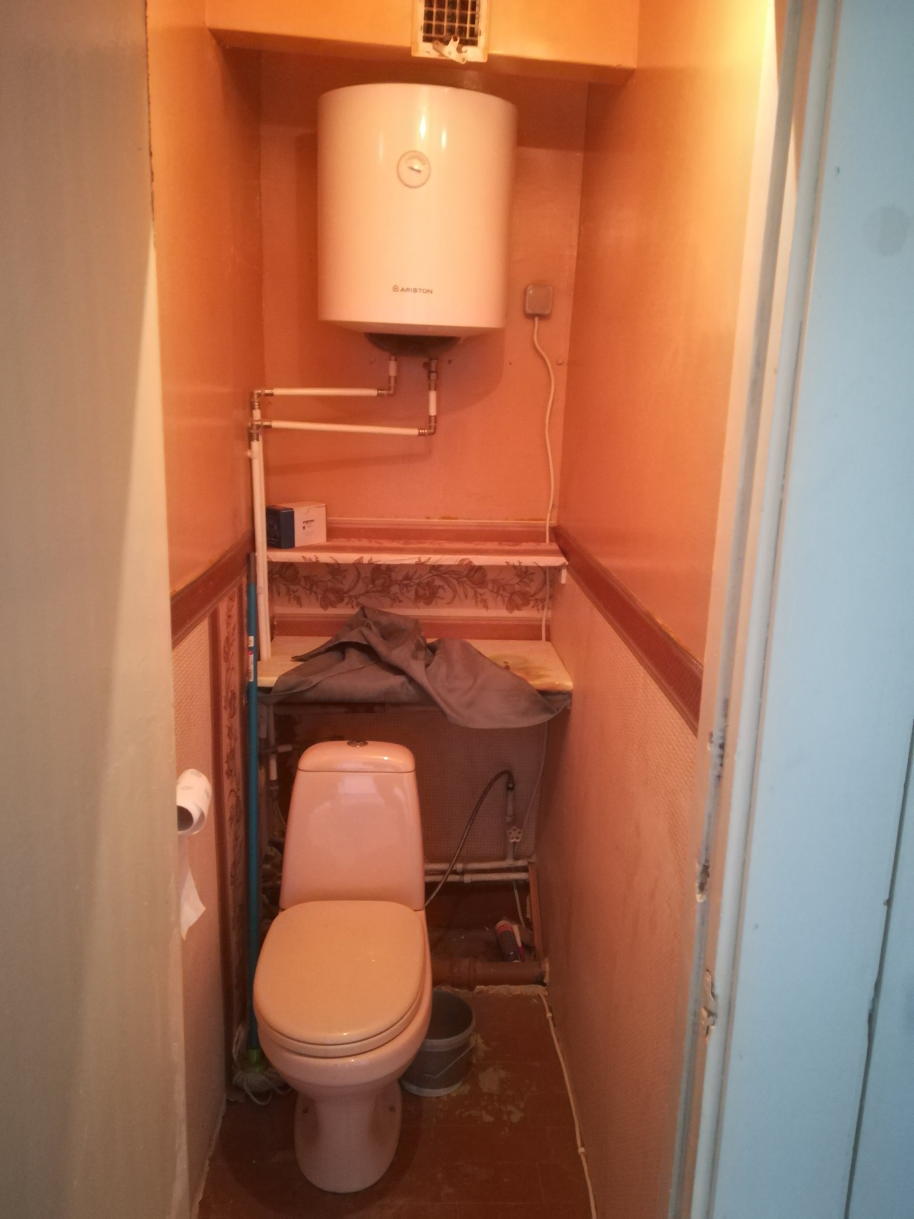 wc -s paigaldada uus pott, põrand plaatida ja sein ja lagi sirgeks ajada ja värvida. Poti taha ehitada sein nii et boiler ja need torud seina taha jääks ,ehitada selline sein et vajadusel saaks seina ära võtta.