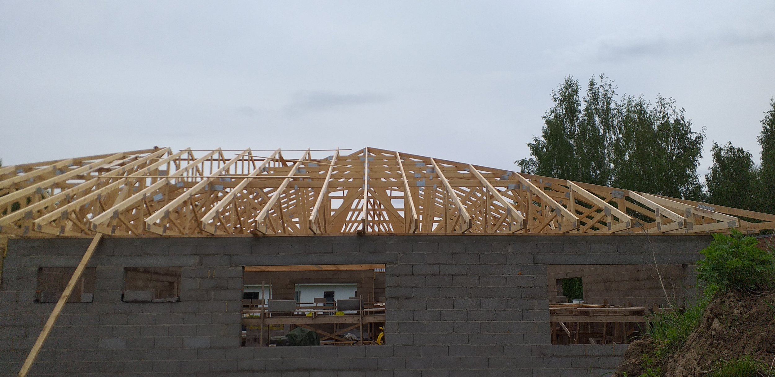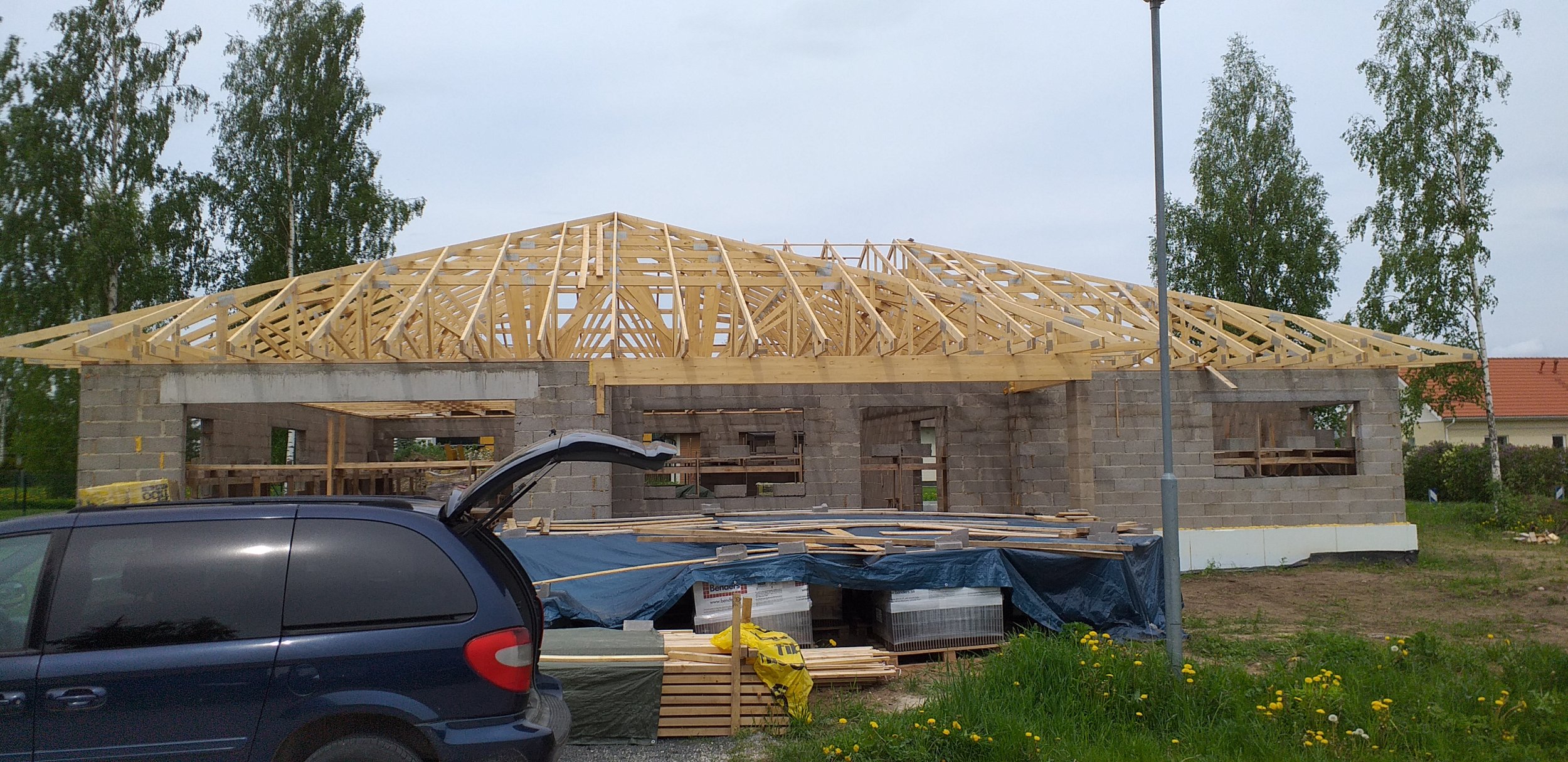On vaja paigaldada aluskate, tuulutusliist, roovid ja Benders Palema katusekivi. Fermid paigas . Katusepinda kuskil 400m2