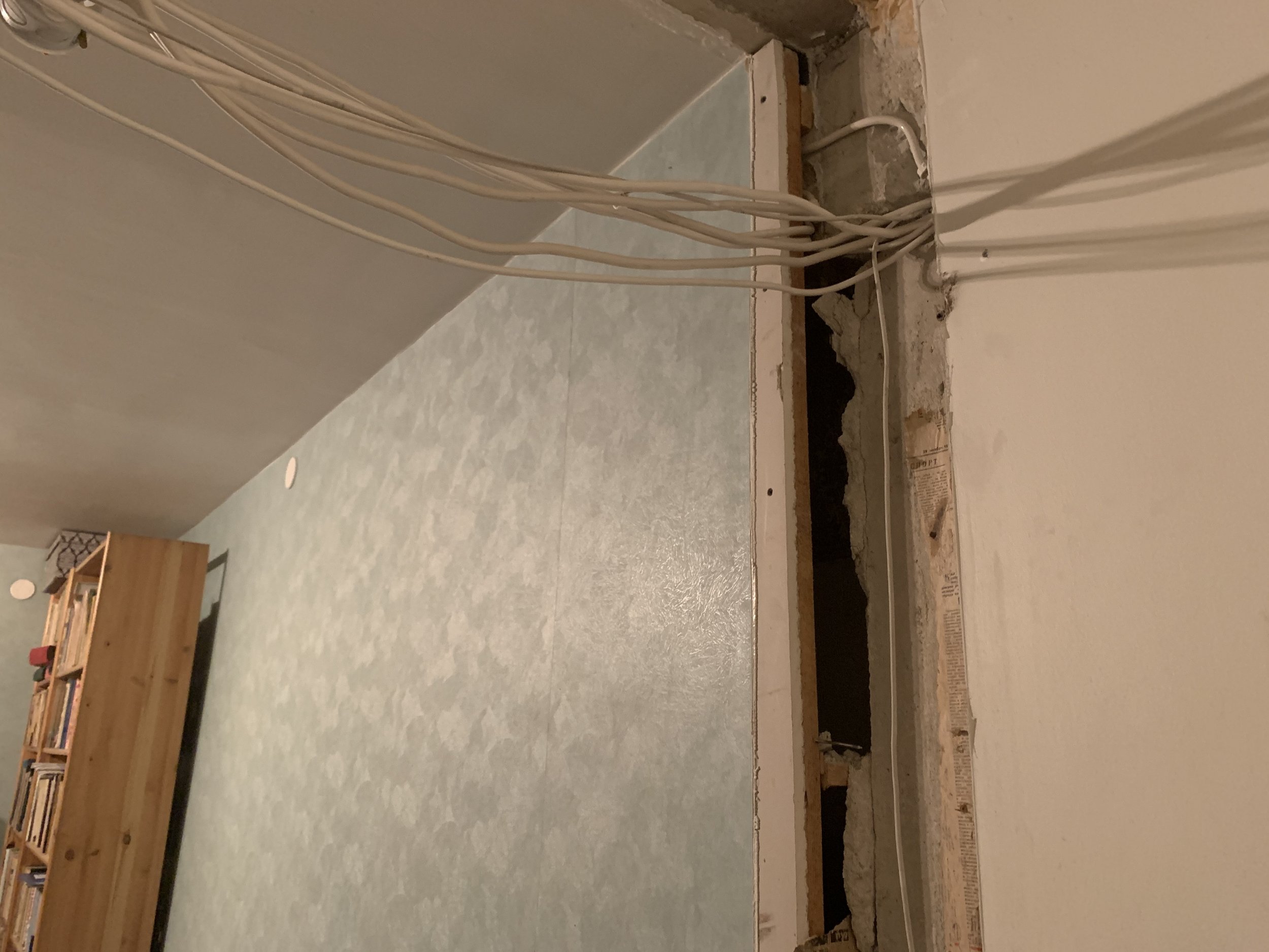 Esiku ja elutoa vahelise seina eemaldamisel välja tulnud juhtmed tuleb pikendada ja panna põranda alt jooksma.