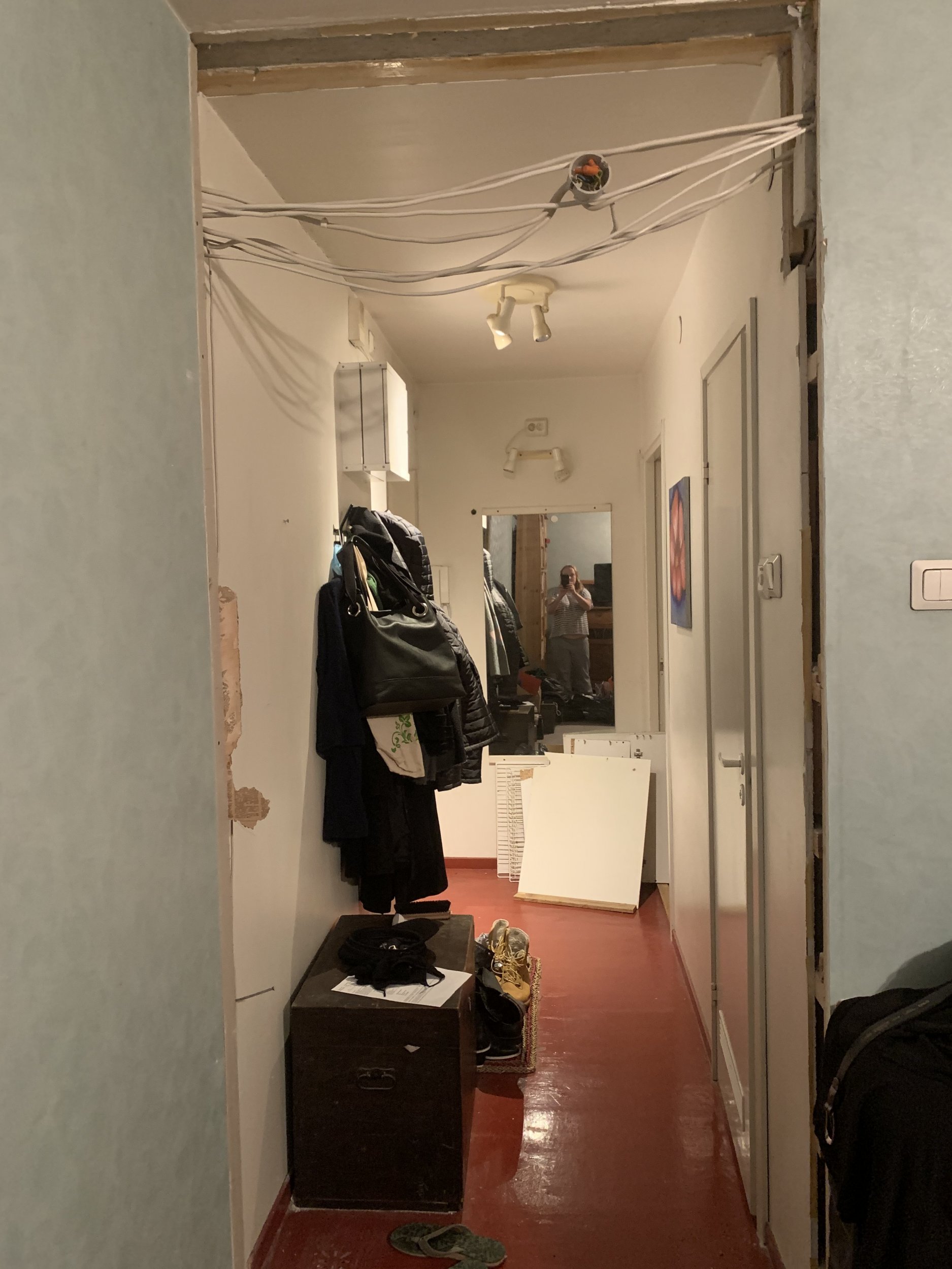 Tallinnas asuva hruštšovka korteri üldpind on 49m2. Korter on liftita maja neljandal korrusel. Remont on vaja teostada esikus, elutoas ja köögis. Hiljuti on elutoa ja köögi vahelt maha võetud mittekandev sein, samuti on uks eemaldatud elutoa ja esiku vahelt. Korteris on paar mööblieset, mis tuleks enne remonti või selle ajal utiliseerida (väike laud, tool, köögimööbli osad), paar mööblieset (elutoa diivan, laud) jäävad remondi ajaks sisse ja tuleks kilega katta.