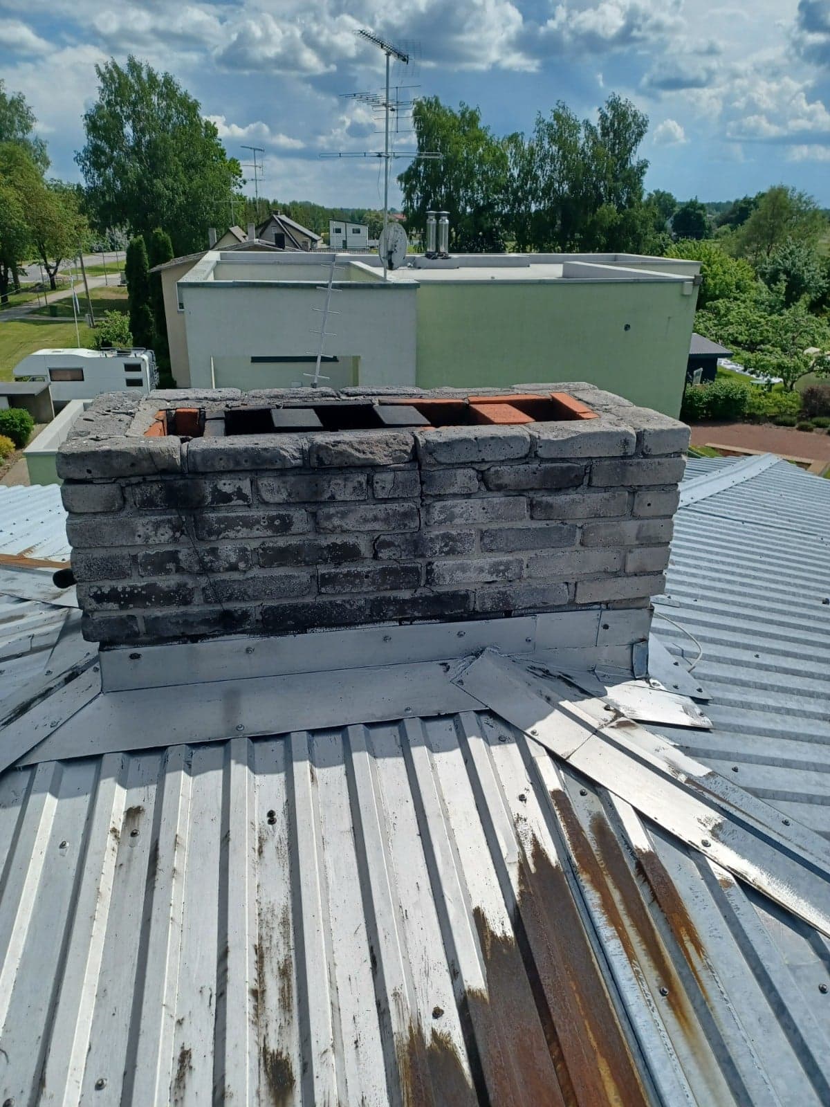 Soovin leida head töömeest, kes teeks eramule uue nõuetekohase korstnapitsi, Korstna hetke olukord näha fotodel. Katusekalle väike ca 4 kraadi