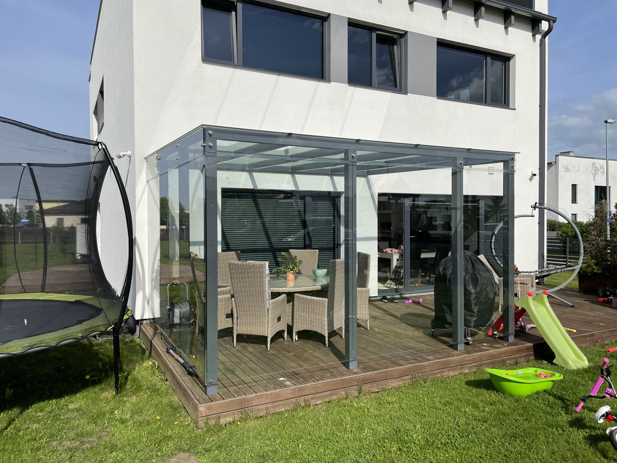 Pakkumine sisaldab vana terrassi eemaldamist ja utiliseerimist. Uue aluskonstruktsiooni ehitust ja laudise paigaldust.
