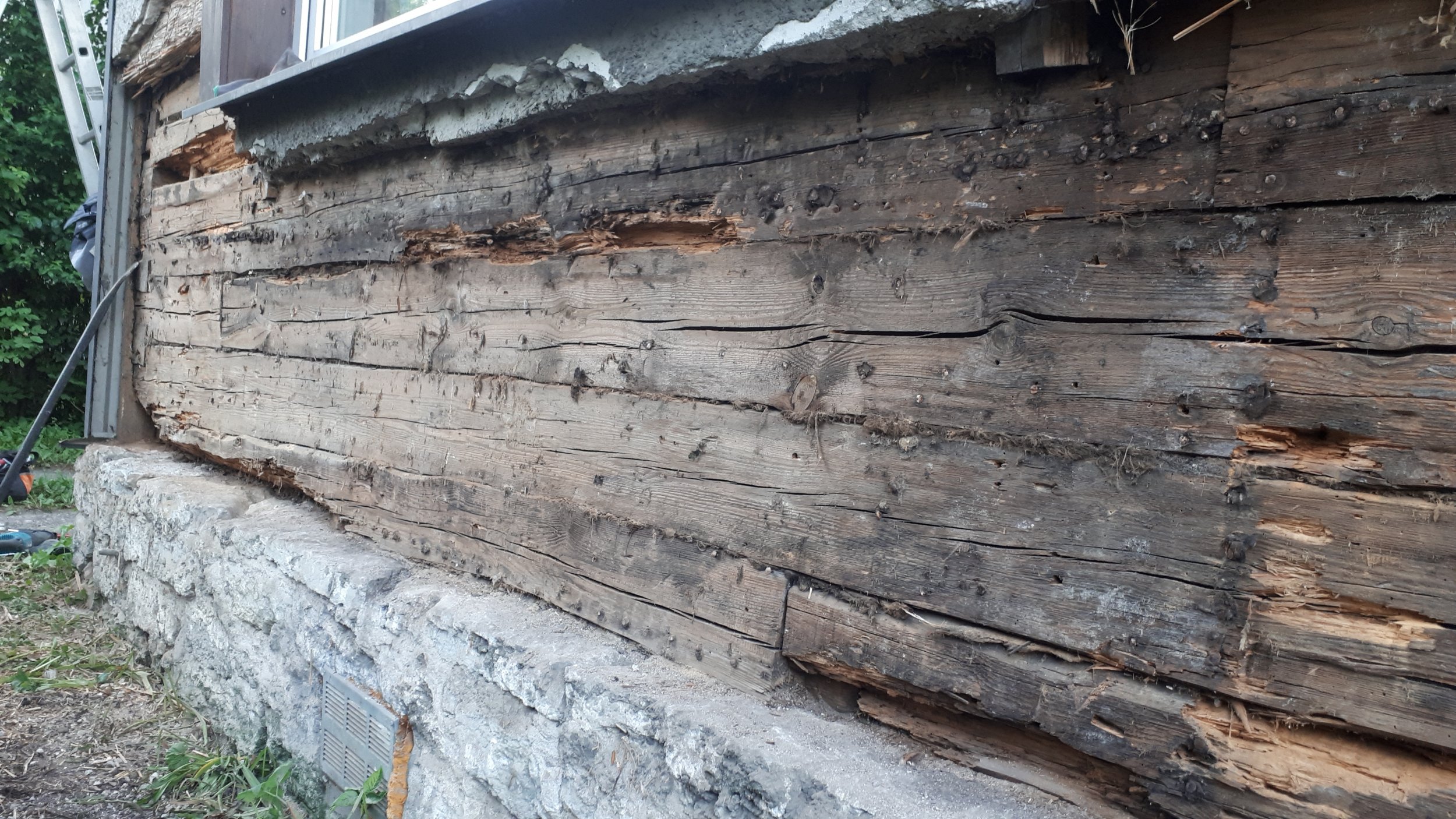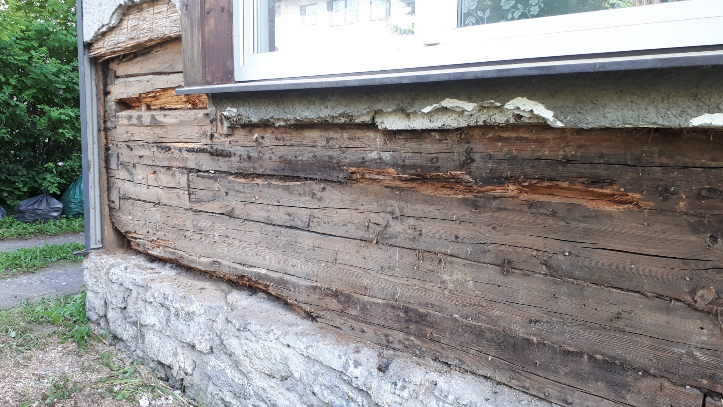 1925 aastal ehitatud palkmaja alumise nelja rea palgi vahetus ning kõrgemal paikneva lühema palgiosa vahetus/proteesimine. Pikema välja vahetatava palgirea pikkus 4,2m, palgid 15cm laiad. Alumine palk täielikult pehkinud, pealmised osaliselt pehkinud.