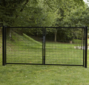 This side must be build with 3d metal grid of 5 mm color RAL 7016. Also the gate should be the same color and material.