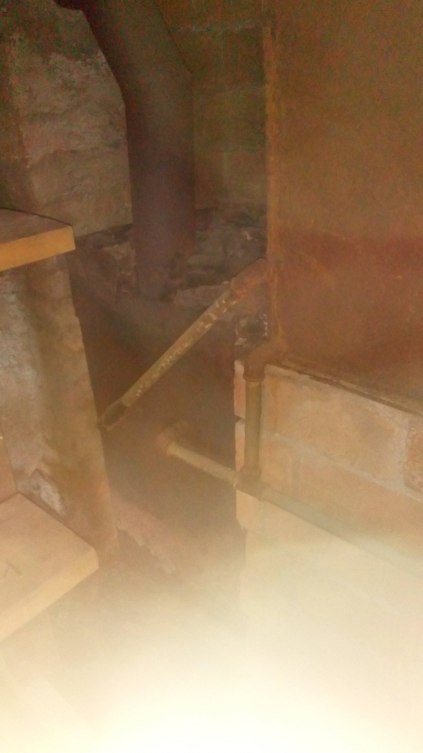 Pikka aega kasutuseta saunaruumis tuleb välja lõhkuda vana puudega köetav saunaahi koos kerisega. Samuti seni kasutatud lahtine kuumavee paak. See tuleks asendada puudega köetav uues kerisega, mis oleks köetav eesruumist. Lisada tuleks ka veesoojendi. Sobida võiks näitena
