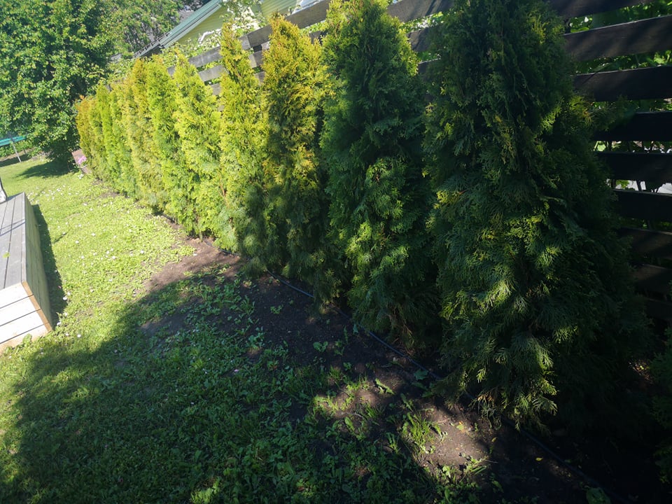 Kangas, murupiire ja multšiga katmine. Heki pikkused 12m ja 15m. Multšiga kaetava pinna laius 0.8 m. Aluspinda kaevata ei ole vaja. Kangas ja murupiire paigaldada olemasolevale pinnale.