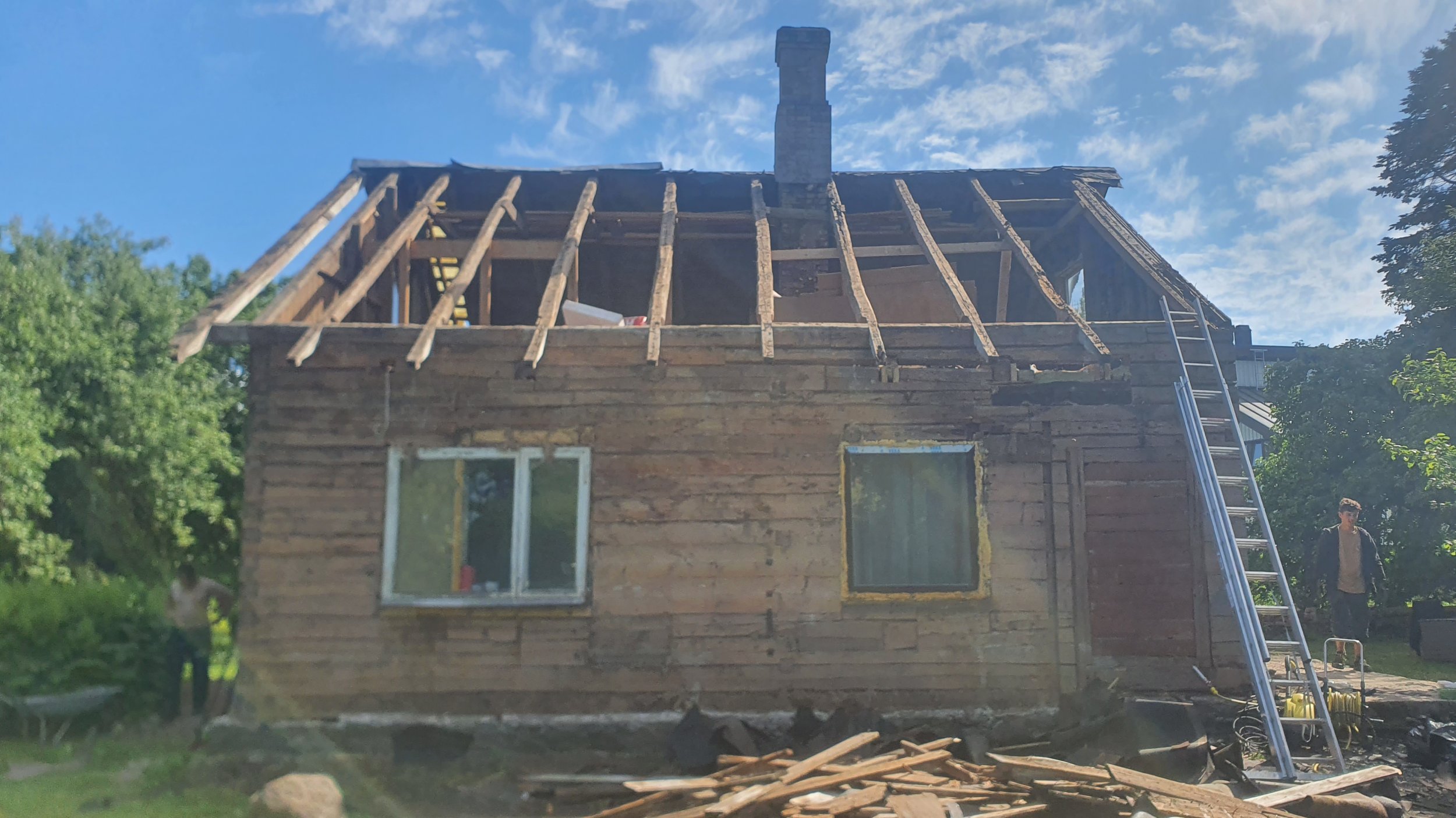 Vana palkmaja, katus maha võetud. Vajab 5 sarika välja vahetamist. Vanadele sarikatele peale poole 50x100 pruss lisamine (tugevduseks ja soojustuse ruumi tekitamiseks). Roov + tuuletõke + klassikprofiil plekk koos serva ja harjaplekkidega. (Kõik asjad - kui unustasin midagi).