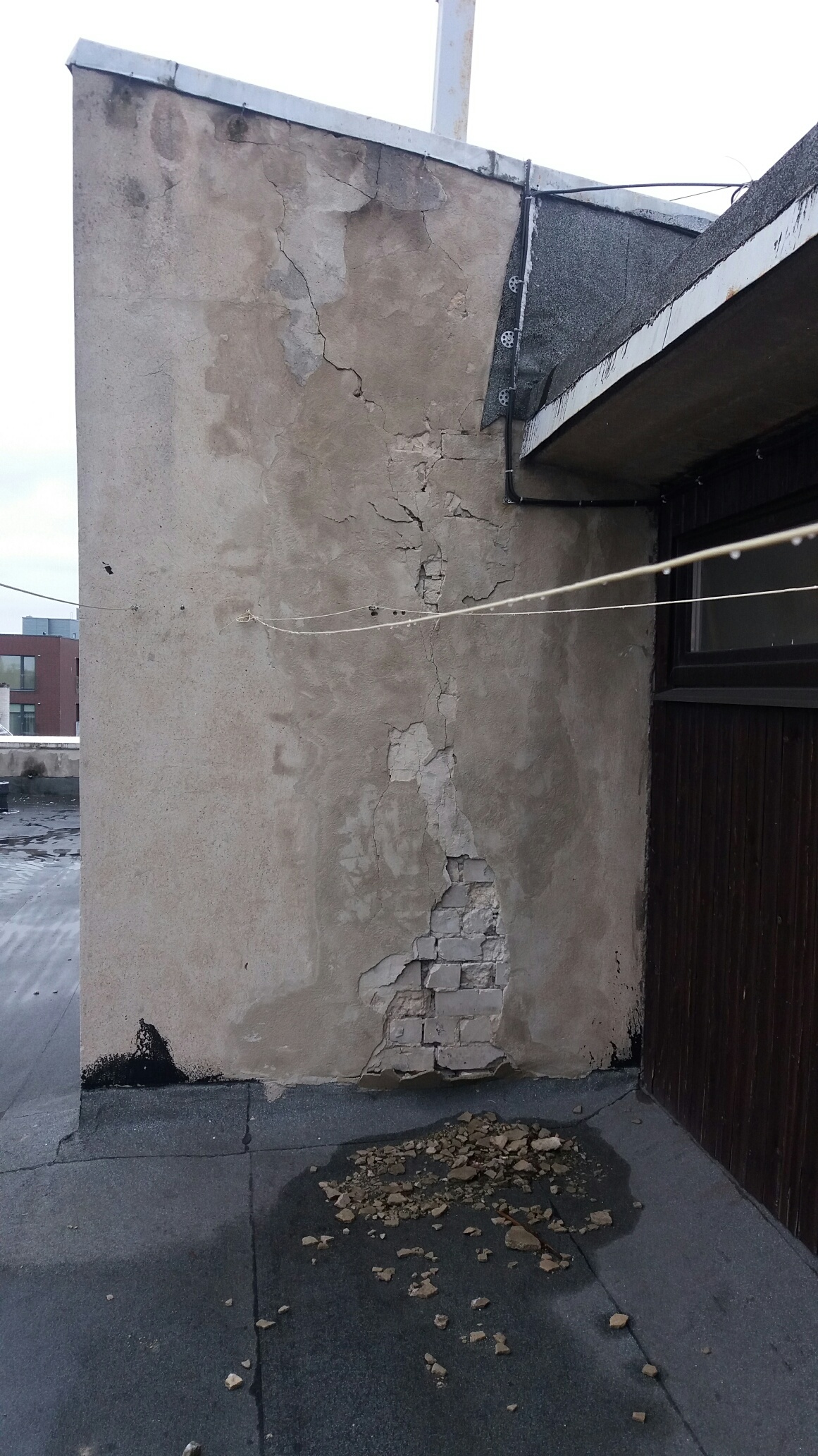 Vaja oleks võtta vana lahtine krohv maha, aukudesse traabetsvõrk ja üle krohvida mõlemad seina pooled. Asjaga kiire