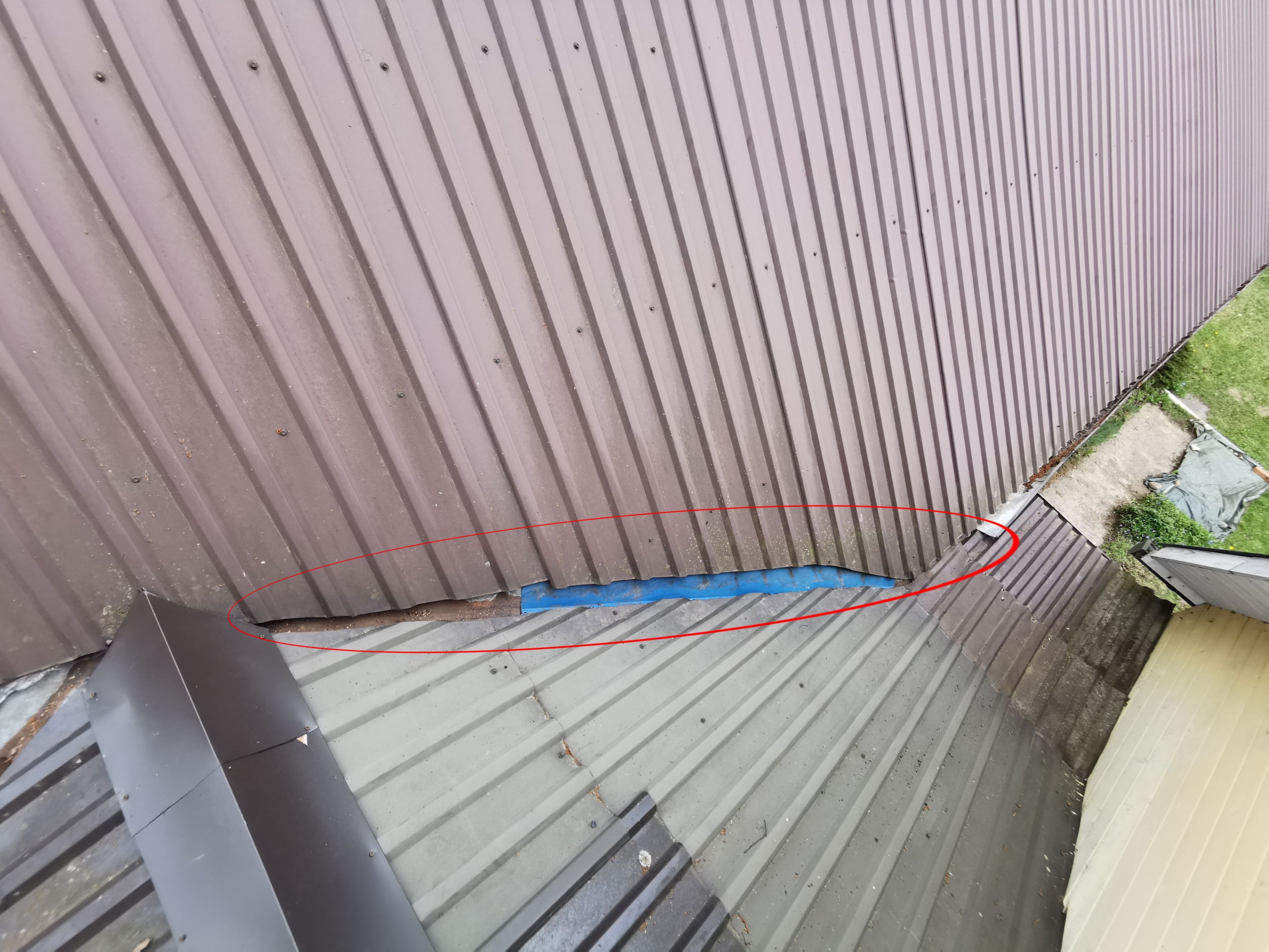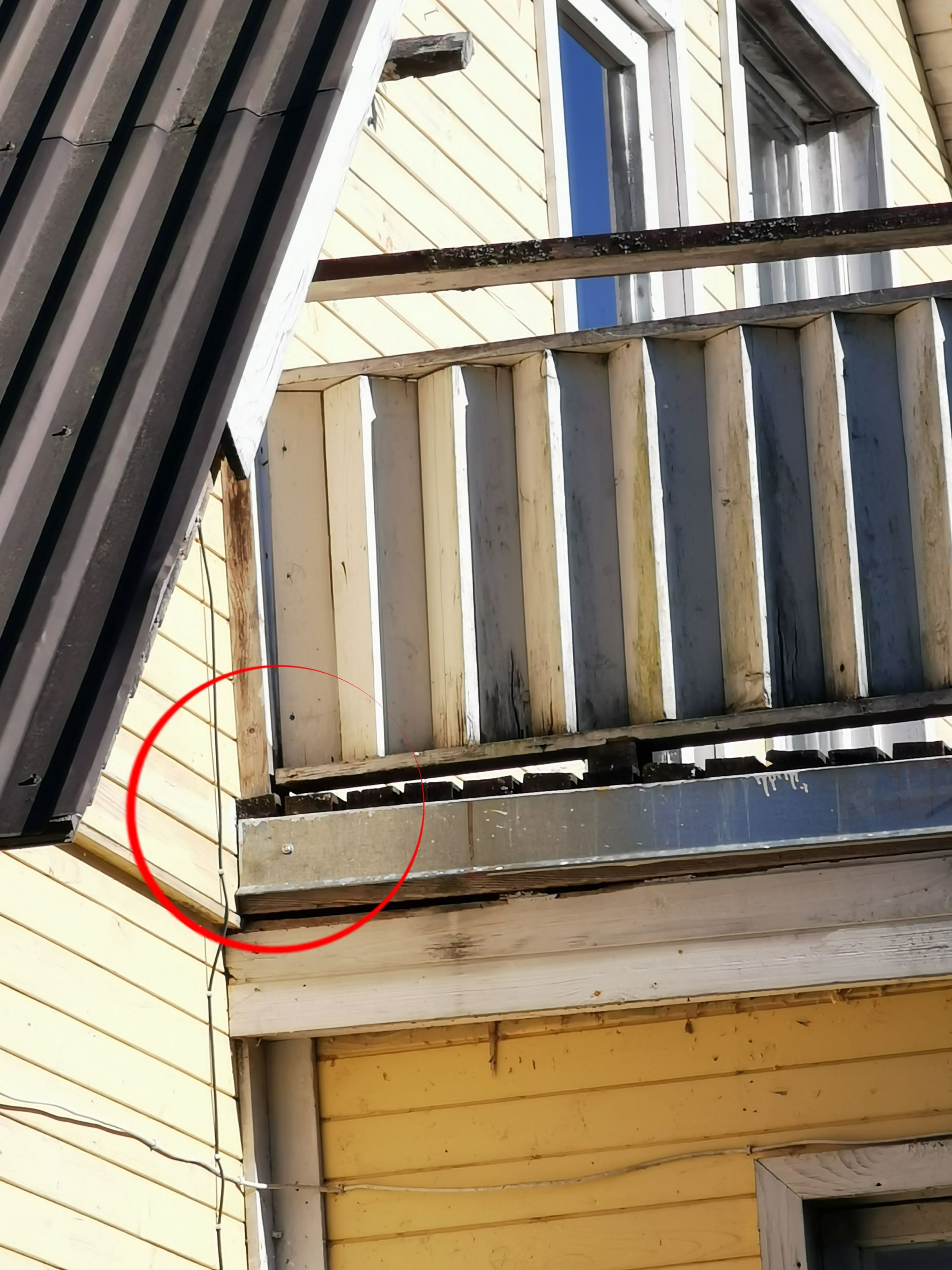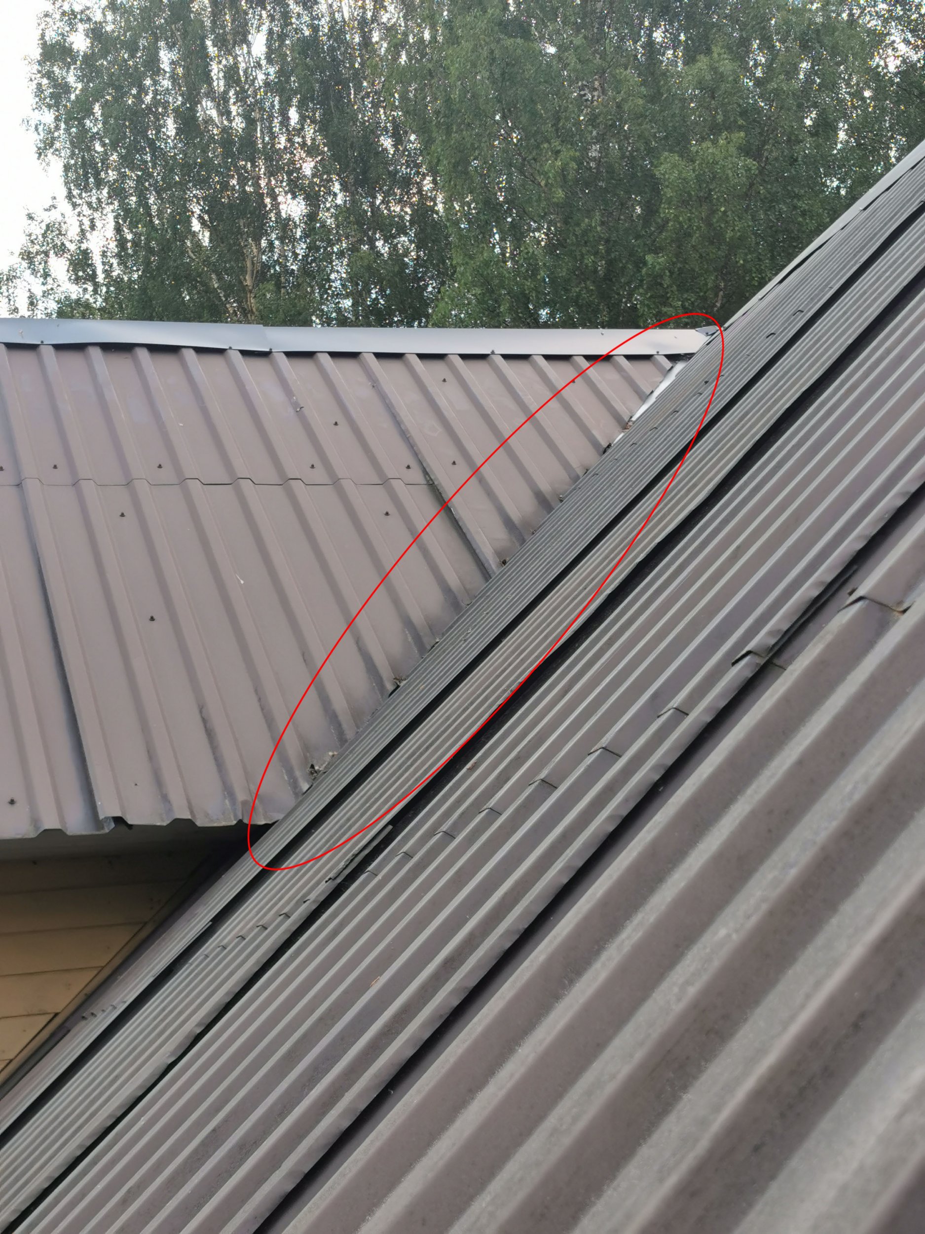 Elumajal tuvastatud lekkeid kuues kohas plekk-katuse liitekohtades. Sh. rõdu seinapoolses osas. (Rõdu puitdetailid eemaldatakse).