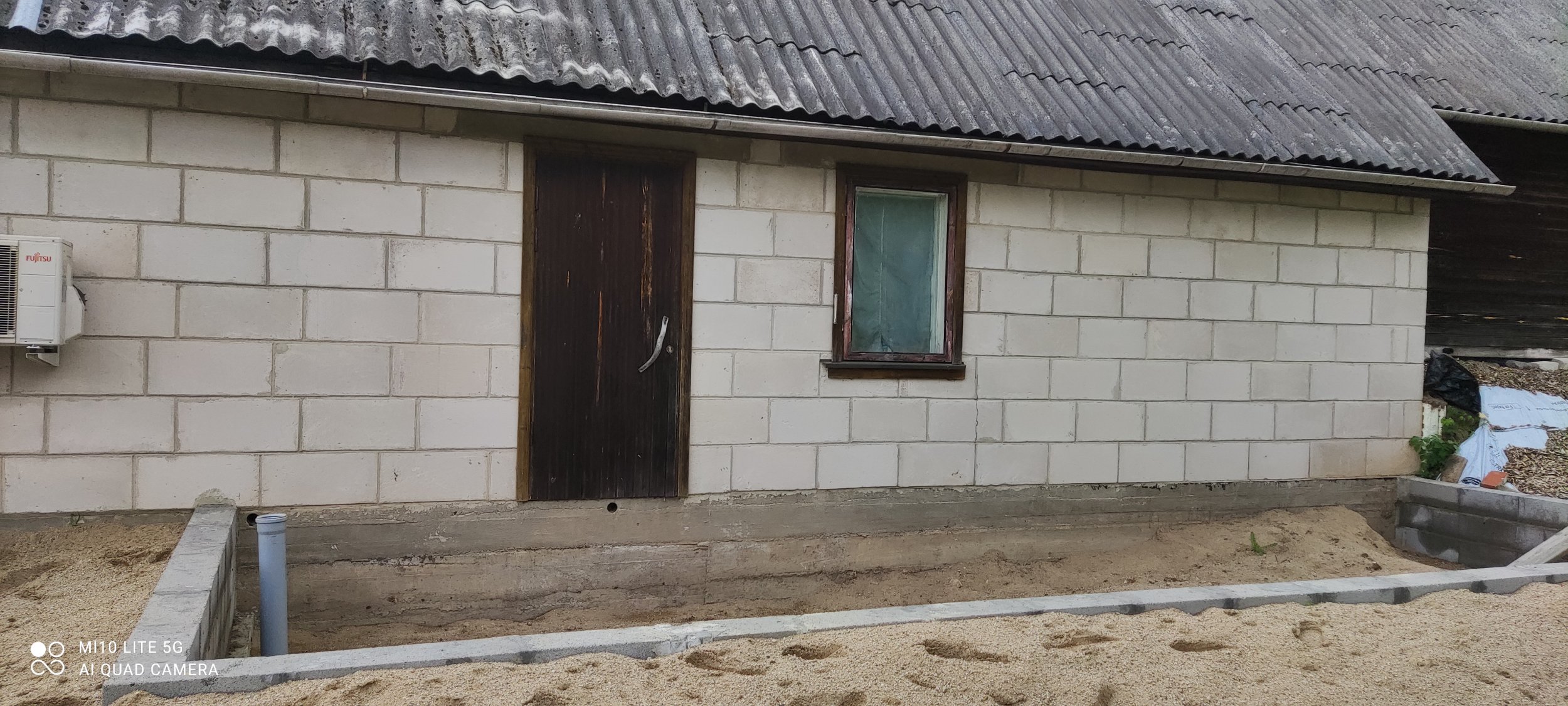 Alustatud projekt oleks vaja lõpuni ehitada. Septik paigaltatud, toru toodudvundamendi sissepoole, kuhu oleks vaja ehitada seinad, kattus ja kõrvale elutuba, ühesõnaga võtmed kätte. Välisõõdud on 320X875
