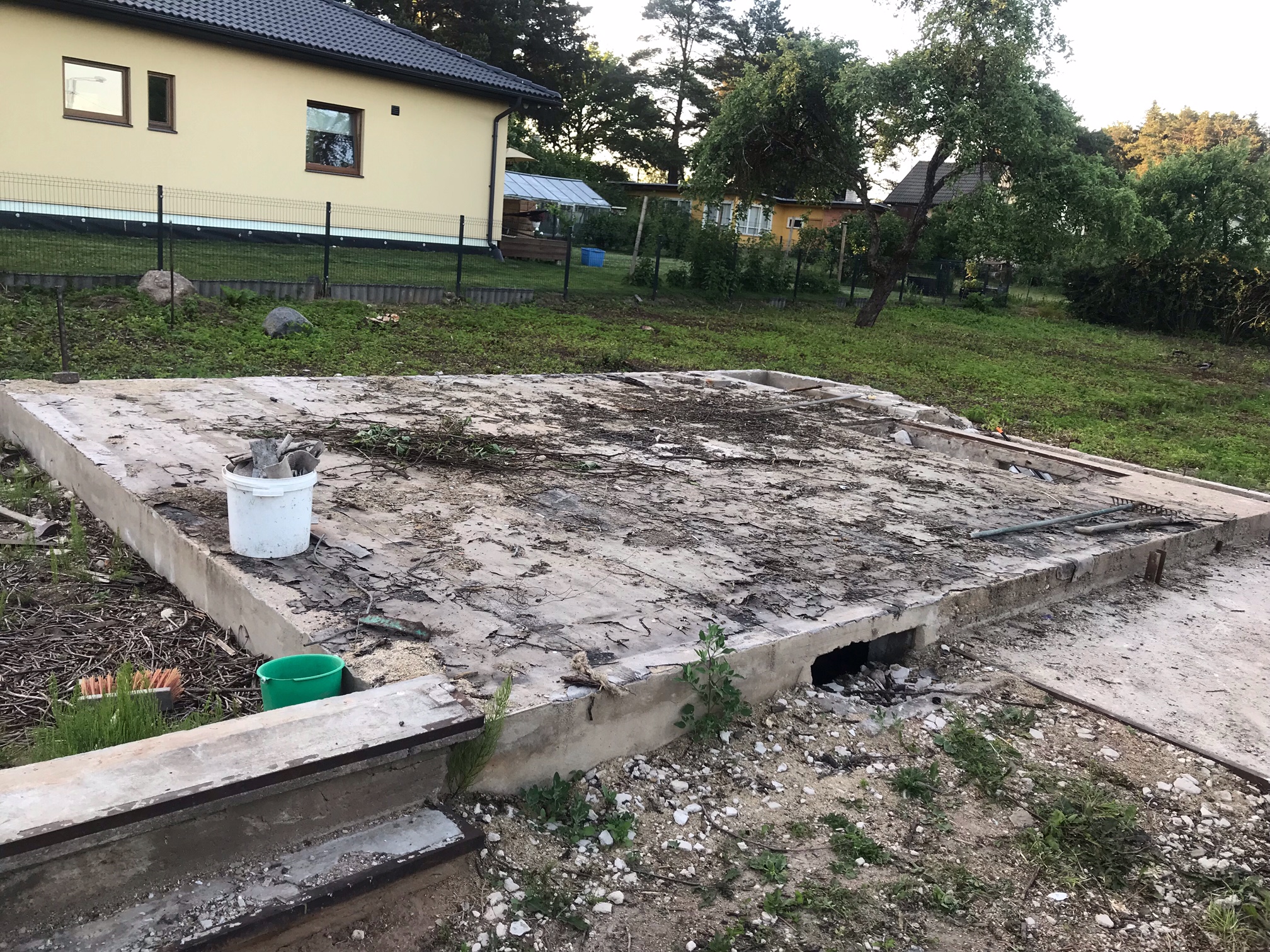 Sooviks aiamaja betoonist vundamendi/põranda ja garaaži põranda lammutust. Objekt asub Ihaste linnaosas Tartus. Keldri mõõtmed on 5,3x6,4 meetrit. Põrand ulatub keskmiselt 30 cm maapinnast ülespoole. Vaja oleks lammutada põrand ja seinad maapinnast 50cm allapoole. Lammutusjäägid saab ladestada sinna samasse keldrisse