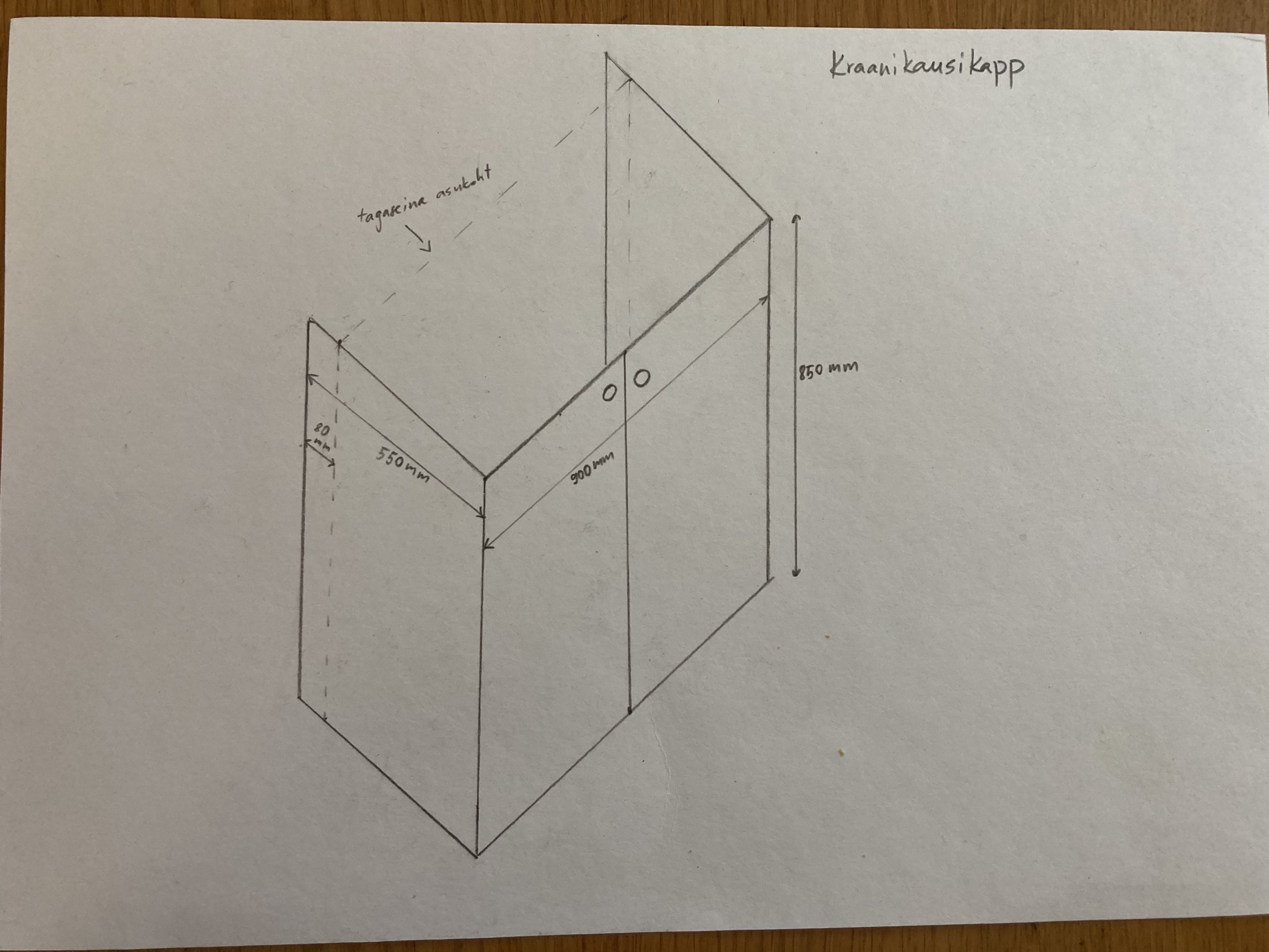 Täpsustused hiljem (kapi võib teha tagaseinata või ilma, aga see peaks arvestama köögi seina ääres jooksvaid vee- ja kanalisatsioonitoru).